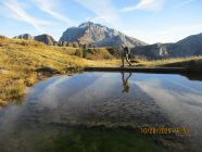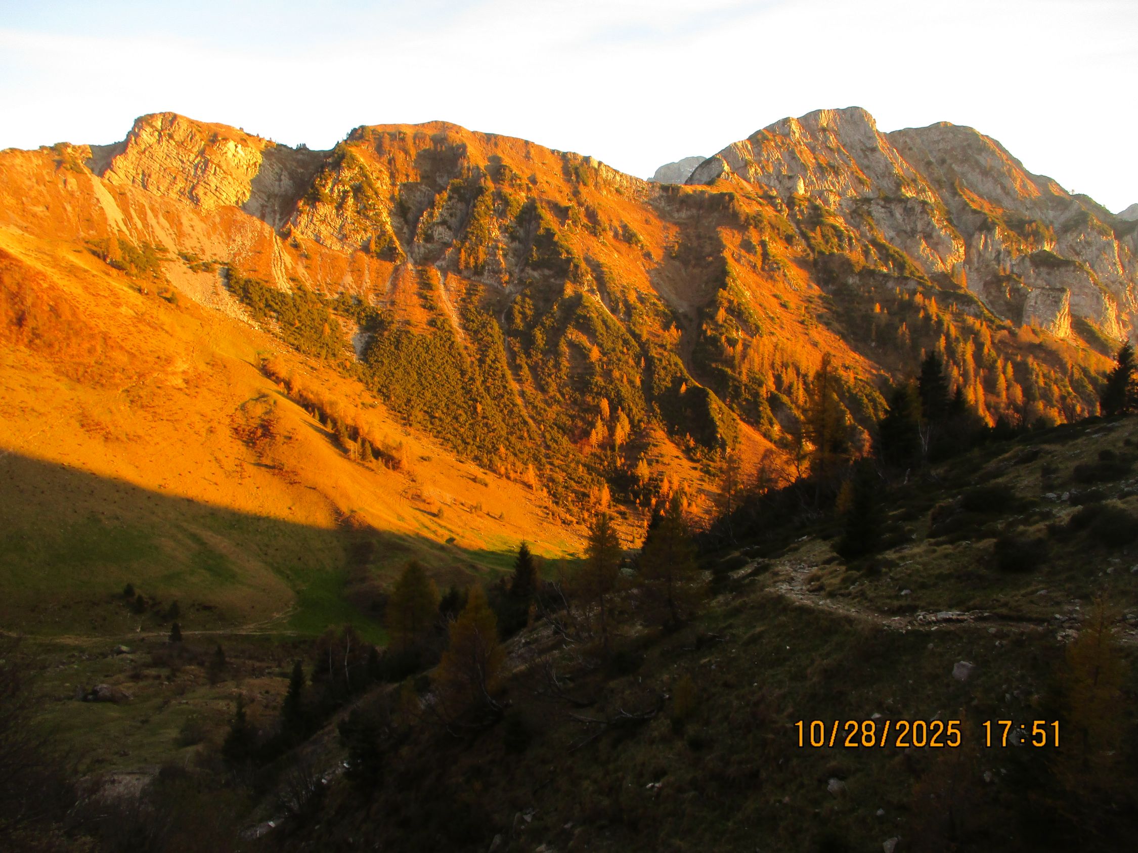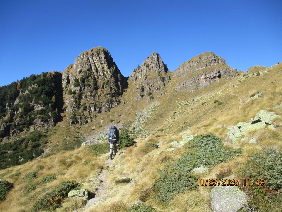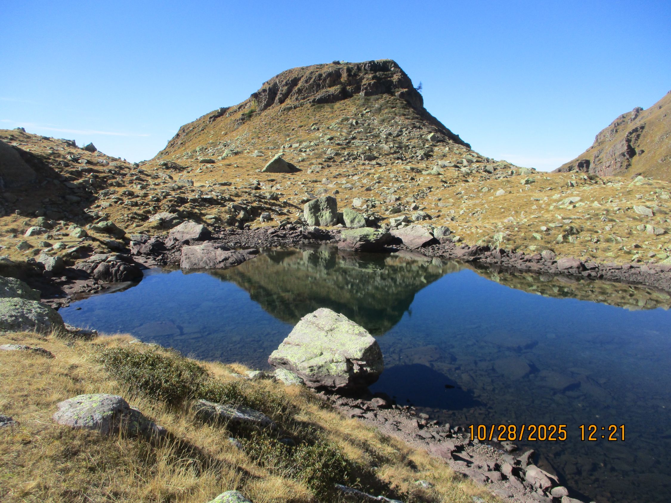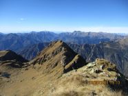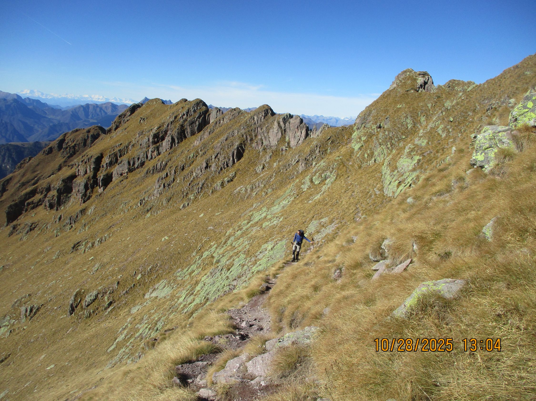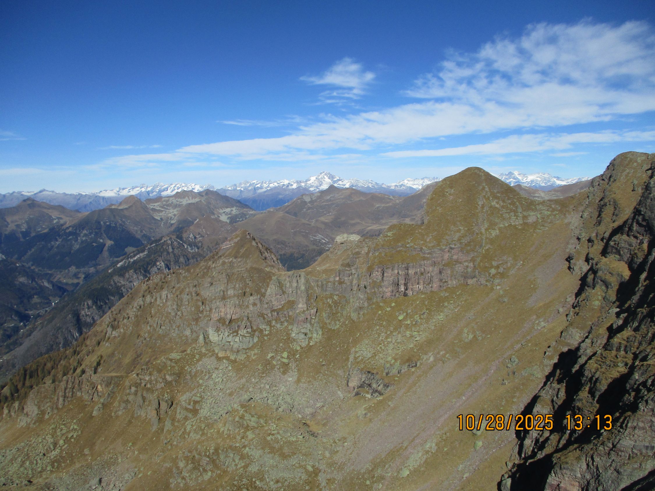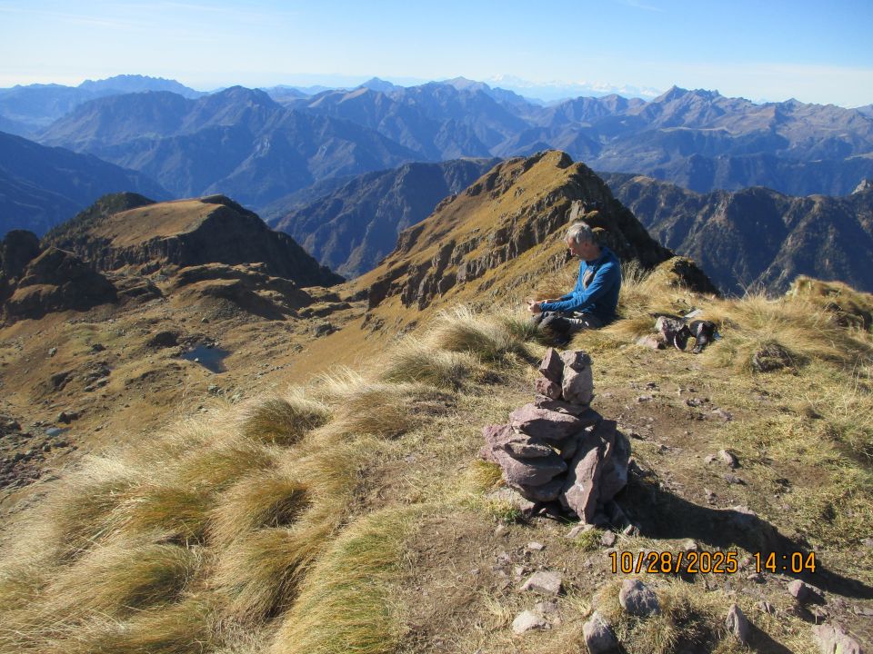 Prächtiges Herbstwetter mit sensationellen Aussichten, u.a. Bergell, Walliser, Poebene. Appenin und Monviso schimmernd in der Ferne. Später etwas windig, und nach Verschwinden der Sonne recht frisch. Alles schneefrei.