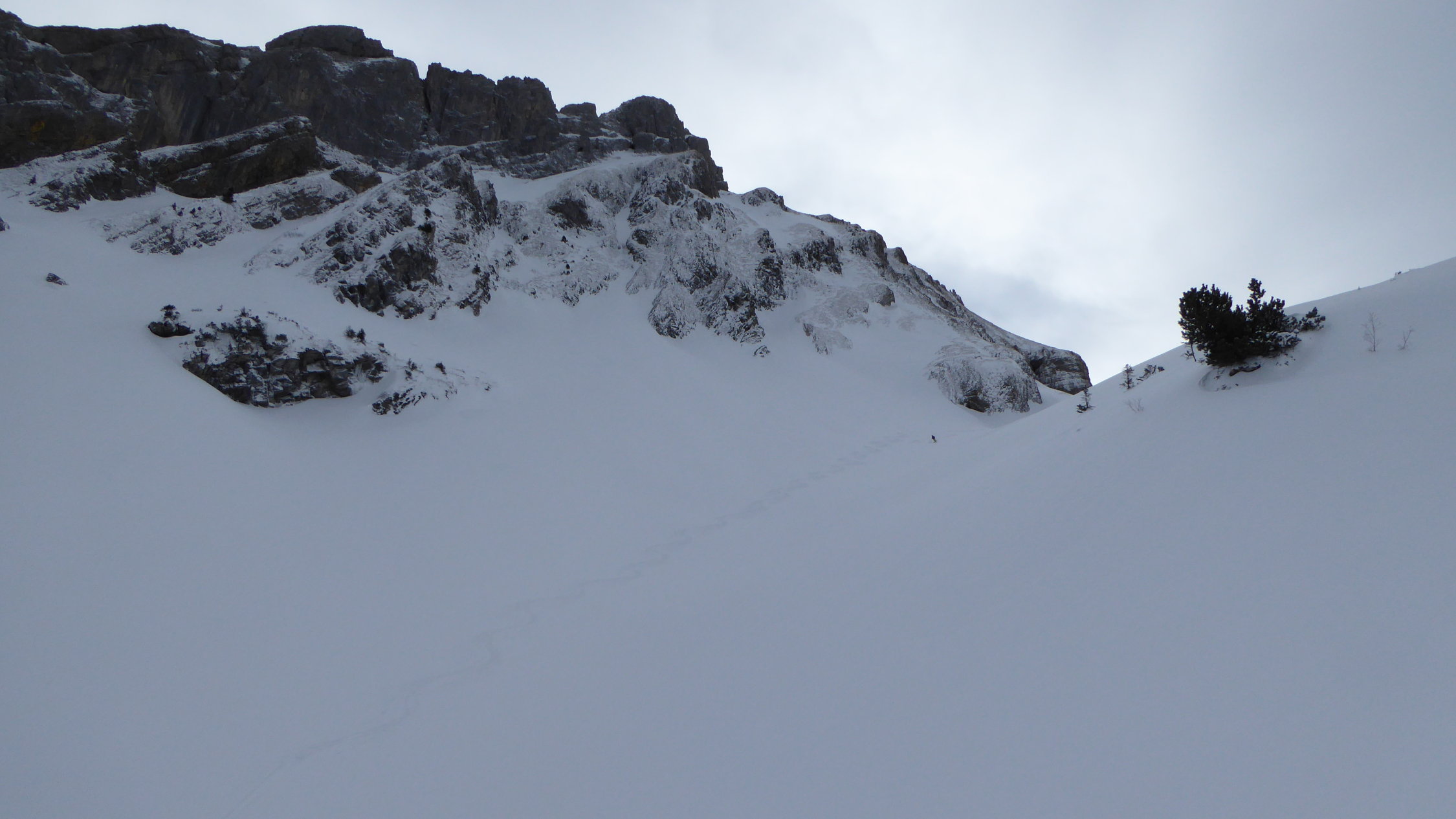 Mit der 07.45 Uhr Bahn hoch und erstaunlicherweise noch keine einzige Spur vor uns (auch nicht zur Lidernenhütte). Somit alles selbst gespurt, auf ca. 2000m von einem Duo eingeholt, welche dann noch den Schluss gespurt haben. Beim Sattel 2138m entschieden wir uns für die Abfahrt, da sich am Horizont eine Schlechtwetterfront meldete und sich langsam diffuses Licht breicht machte. Bei der Alp Rotenbalm wählten wir die Variante über Dibi hinunter nach Ängi.