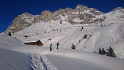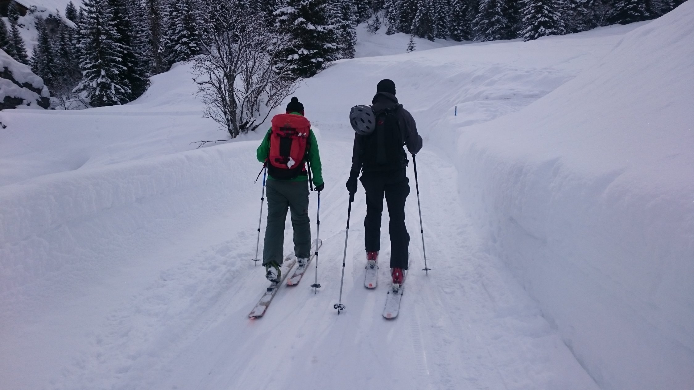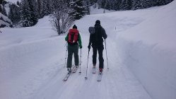 Mit etwas Verspätung und ÖV Komplikationen sind wir bei leicht zunehmender Bewölkung ab St.Antönien Rüti bei vielversprechenden Schneeverhältnissen in Richtung Hasenflüeli gestartet. Nach etwa 2h Aufstieg kam der angekündigte Südwestwind auf und hat uns leichten Schneefall und sehr schlechte Sicht gebracht. Am Steinmannli haben wir abgefellt und uns rasch, so gut es ging bei der Sicht, auf die Abfahrt gemacht. Der Schnee war pulvrig gut zu fahren und hat trotz kaum Sicht Spass gemacht. Nach 2/3 Abfahrt wurde die Sicht besser und wir konnten noch einige schöne Bögen in zum Teil unverspurtem Gelände ziehen. Auch die verspurten Hänge waren einfach zu fahren.