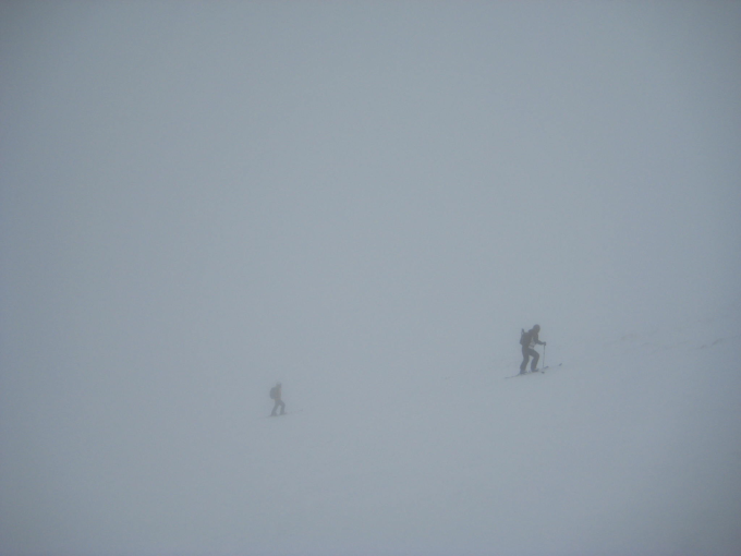 Spur vorhanden, Pulver bis ca. 1600m eher schwer. Ab Birehütte zunehmend windig, später neblig, oben dann fast blind. Ab 10.30h war die Sicht sehr schlecht, Abfahrt war mehr eine Abrutsche.