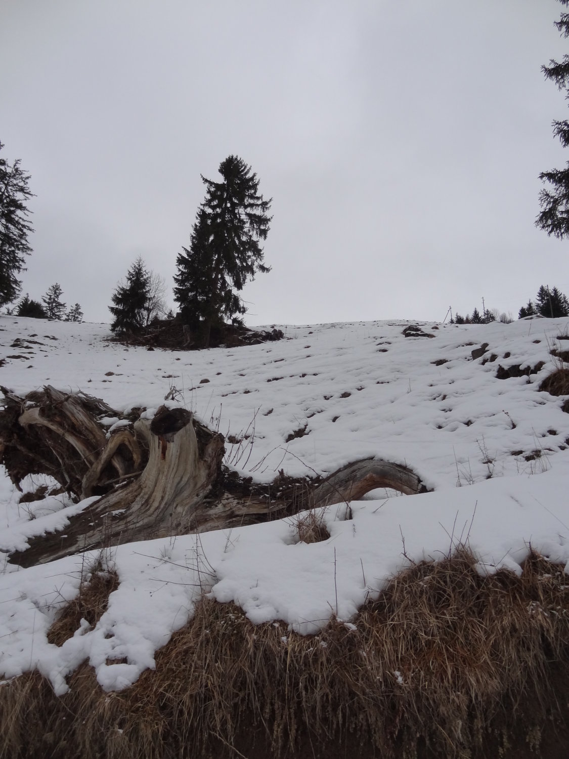 Abfahrt: Oben der Spur entlang zurückgesucht, ab Hinder Chumi (mit Sicht) dann die Route via Gschwänd gewählt. Hier bis ca. 1450 m schöner Pulver und tolle Hänge. Danach kurz etwas deckliger Schnee. Unterhalb 1300 m hat der Schnee dann meist getragen und war hart (zum Glück) so konnten wir trotz der sehr geringmächtigen Schneedecke bis Stalde abfahren.