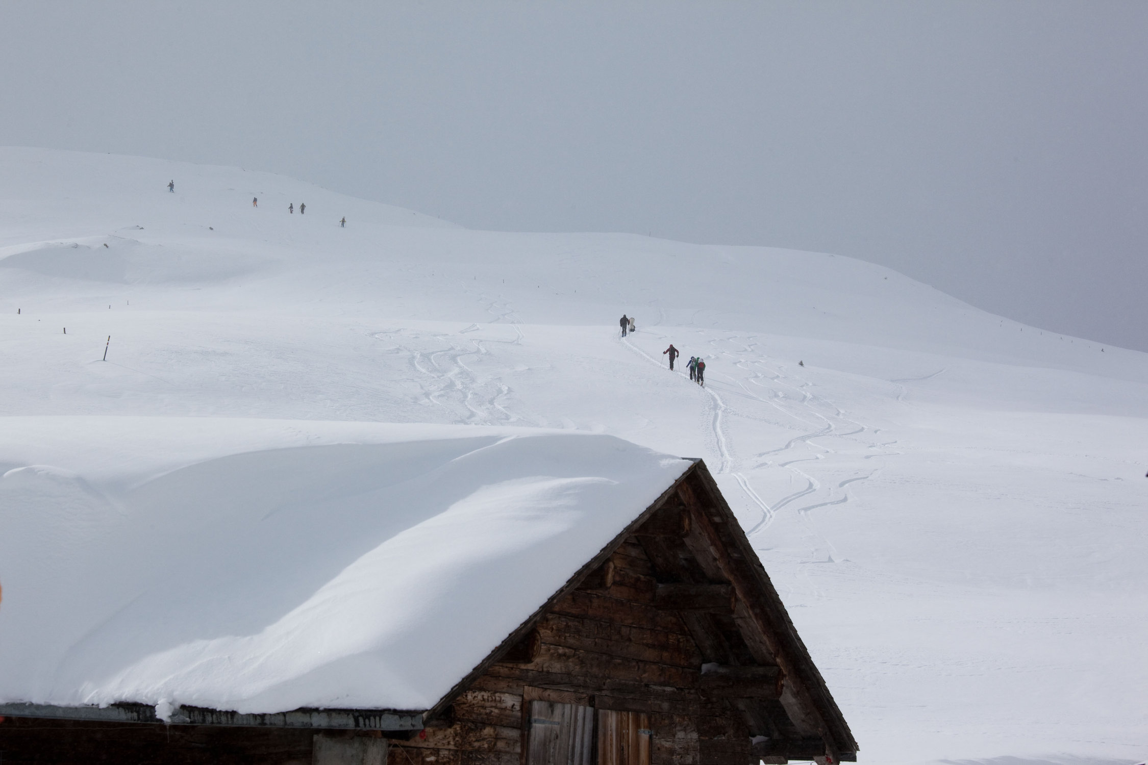 Schnee absolut perfekt, wunderbarer Triebpulver, auf Grund der nur mäßigen Steilheit jedoch bei aktueller Lawinenstufe erheblich unkritisch.