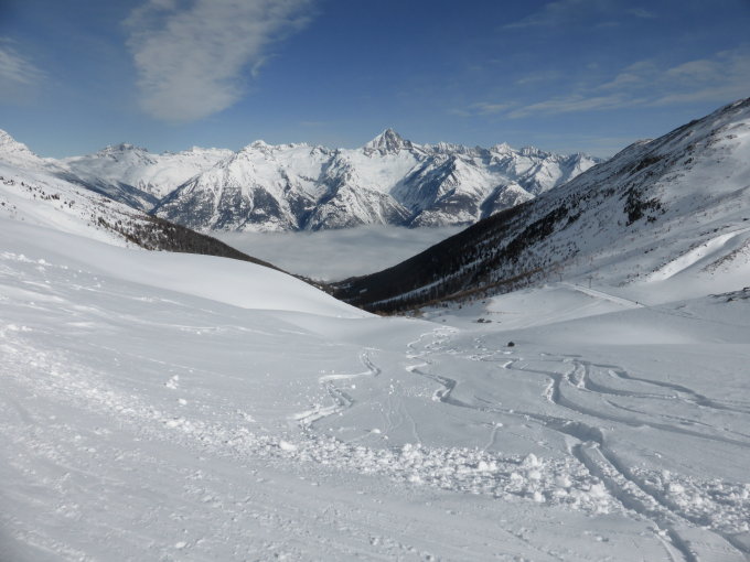 Immer wieder äusserst lohnende Tour im Ginalsgebiet. Der kleine zusätzliche Aufstieg verlängert das Powderfeeling enorm! Diese Variannte ergibt ein Verhältnis von ca.600hm Aufstieg zu 1800hm Abfahrt. Davon sind etwas über 1000hm Pulver!