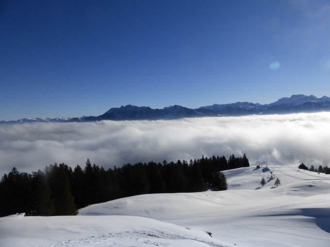 Auf der ganzen Tour beste Verhältnisse! Auf dem Isisizgrat blies am Morgen noch ein strammer Wind der sich aber dann legte. Gute Spur bis zum Gipfel. Bei dem schönen Wetter waren doch einige Türeler unterwegs heute. Am Gipfelhang feinster Pulverschnee und vom Isisizgrat bis Berghaus Malbun schön zu fahrender gesetzter Schnee, von oben bis unten perfekt heute :-)