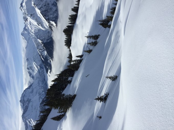 Beste Schneeverhältnisse, in den Schattenhängen noch Pulver.