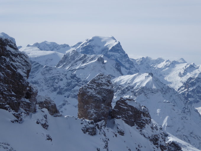 Die Gegend ist sehr gut eingeschneit: vom Start bis zum Gipfel gut gesetzte Unterlage mit meist schöner Pulverschnee-/Triebschneeauflage. Wir stiegen auf der "Normalroute" auf und fuhren via Bischofalp ab (Wildschutzgebiet! Siehe Respektiere deine Grenzen). Wir können die Verhältnisse auf der Normalabfahrt daher nicht gut beurteilen. Die teilweise sehr steile Abfahrt auf der Bischofroute war bis ca. 1500 m wunderbar. Dann wurde es auf dem Wald- (Berg-)weg parallel zum Bischofbach vorübergehend etwas ruppig (kurze Tragestellen bei offenen Bächen).