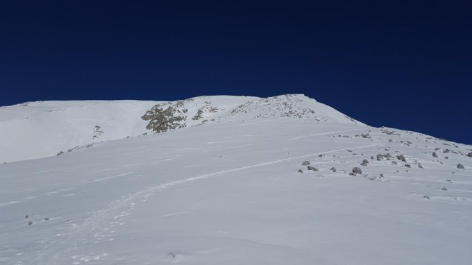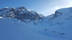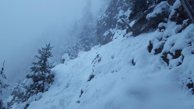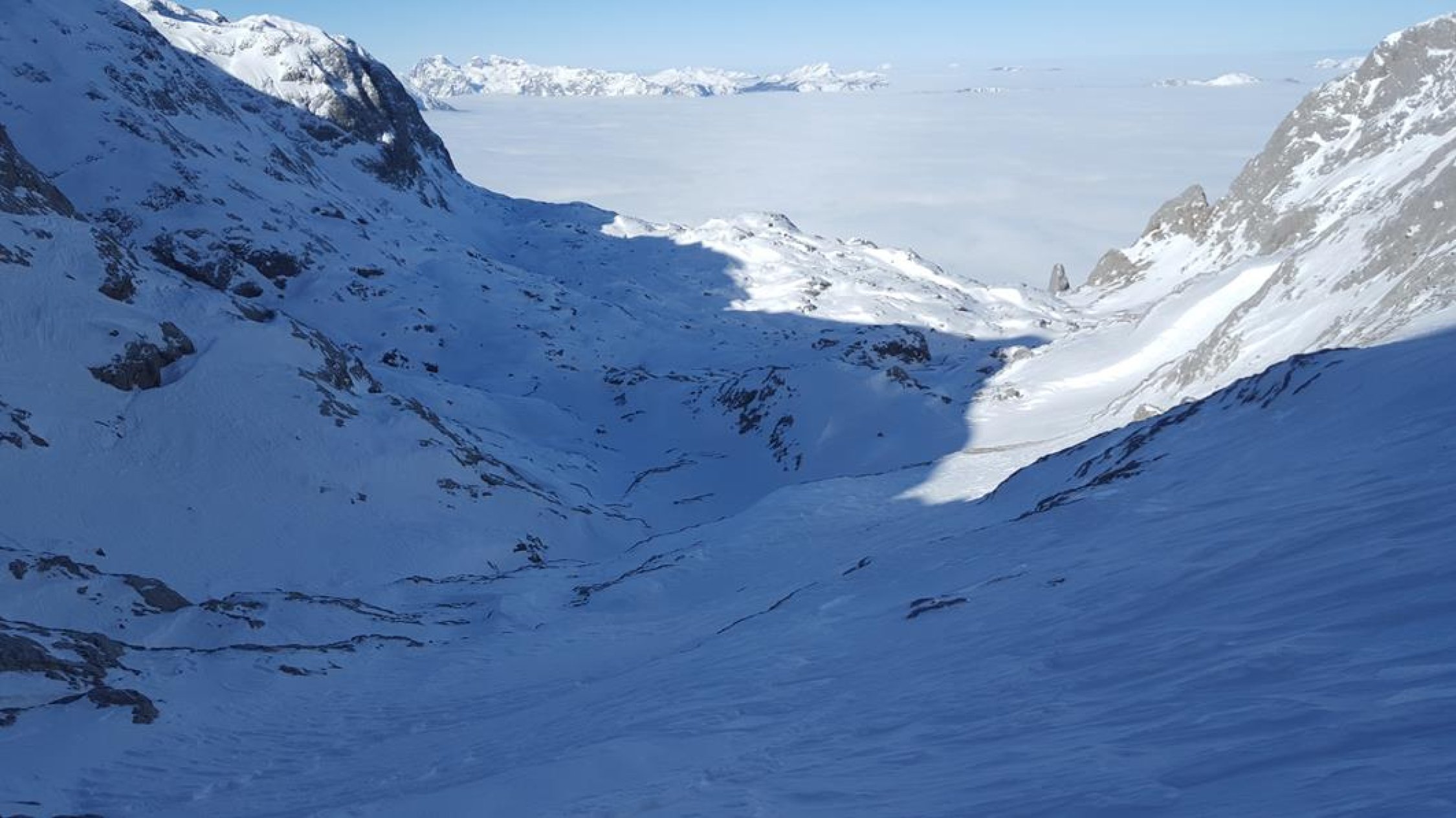 Start im Nebel der bis auf ca. 1500m hielt. Vom Parkplatz reicht der Schnee für den Aufstieg mit Ski, ca.10 cm Neuschnee. Drahtseilstelle Ski tragend, danach weiter mit Ski. Aufsstiegsspur war rutschig teilweise Eisig. Zweite kurze tragestelle auf ca.2200m. Gipfelhang problemlos mit Ski machbar. Am Gipfel mäßig starker Wind. Gute Fernsicht. Abfahrt durch die "Gipfelrinne" sehr gut. Firnartige Bedingungen. In den "Umgängen" Windgepresster Schnee. Teilweise Blankeisstellen. Im Alpeltal im oberen Teil Bruchharsch. Ab der Waldgrenze dann ca.15cm Pulver. Schnee für die Abfahrt reicht bis oberhalb der Drahtseilstelle. Den Rest Skitragend zum Parkplatz.