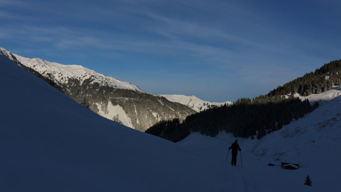 Wie derzeit im Gebiet nicht anders zu erwarten recht gute Bedingungen, auch wenn in der Gesamtheit auch hier der Schnee zu wenig ist. Gemessen an anderen Regionen wirklich gute Verhältnisse, Steinkontakt ist ganz gut zu vermeiden. Gräben sind allerdings nicht überall zugeschneit, deshalb kann man/frau nicht überall bedenkenlos runterfahren. Ansonsten ca. 20cm Pulver auf vernünftiger, bisweilen etwas ruppiger Unterlage.