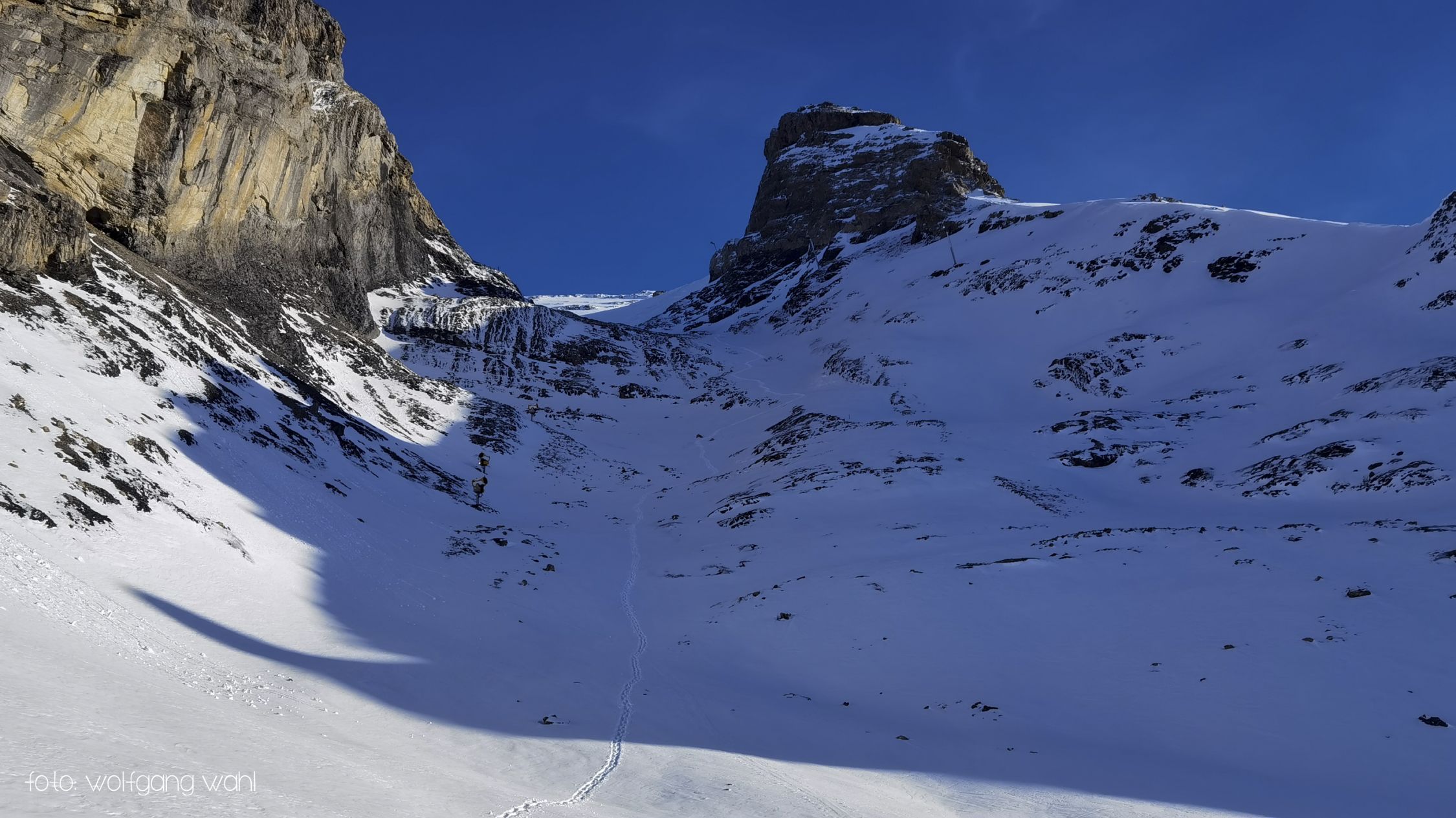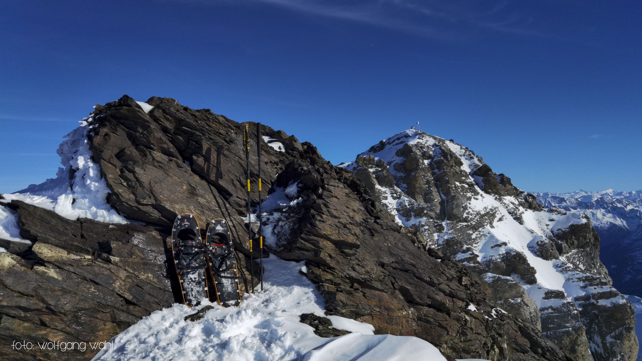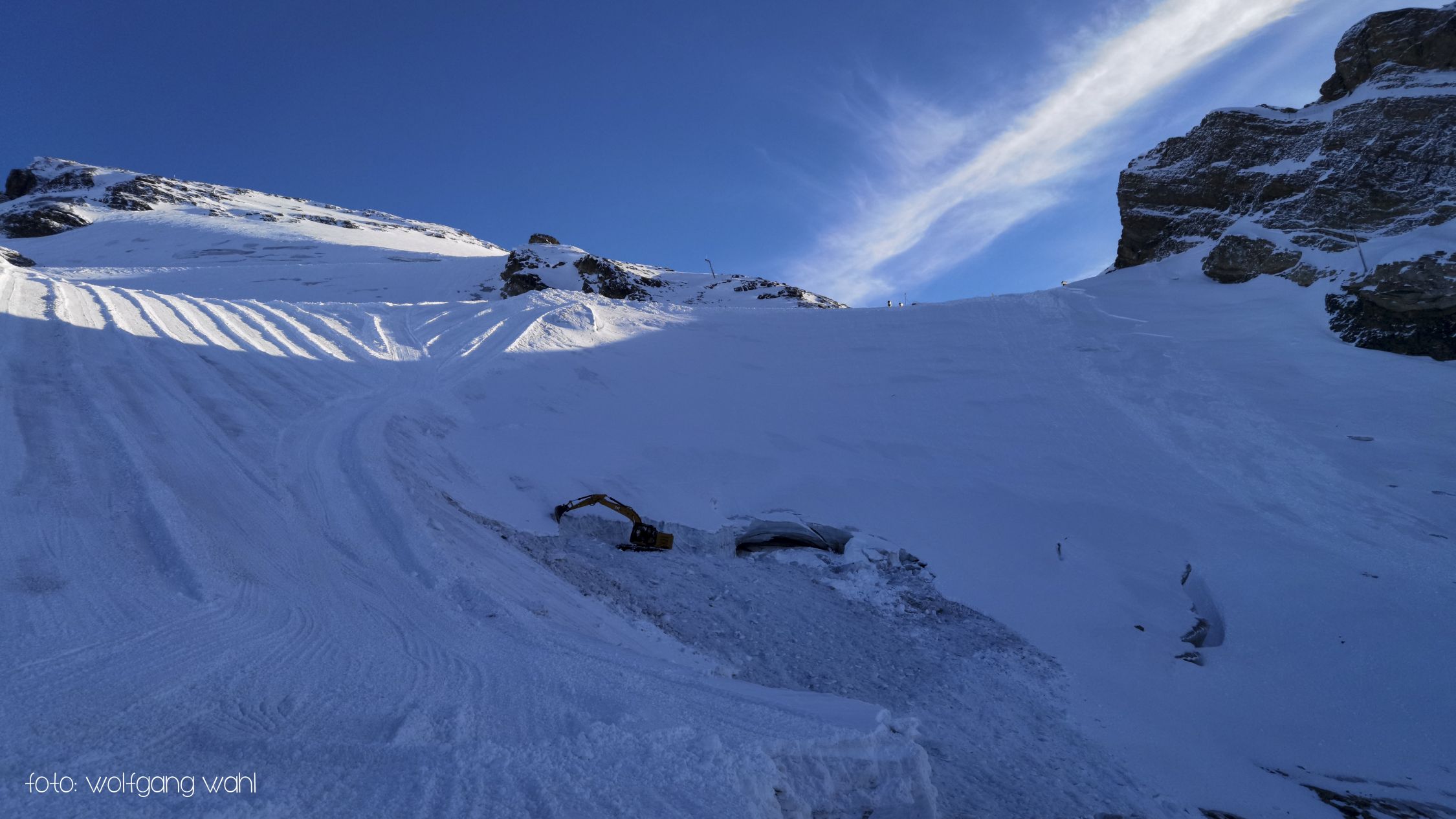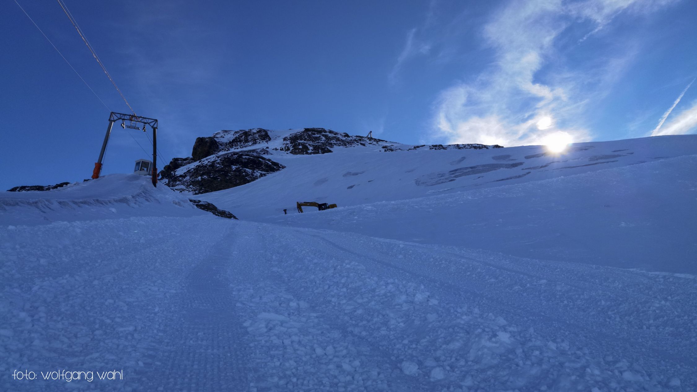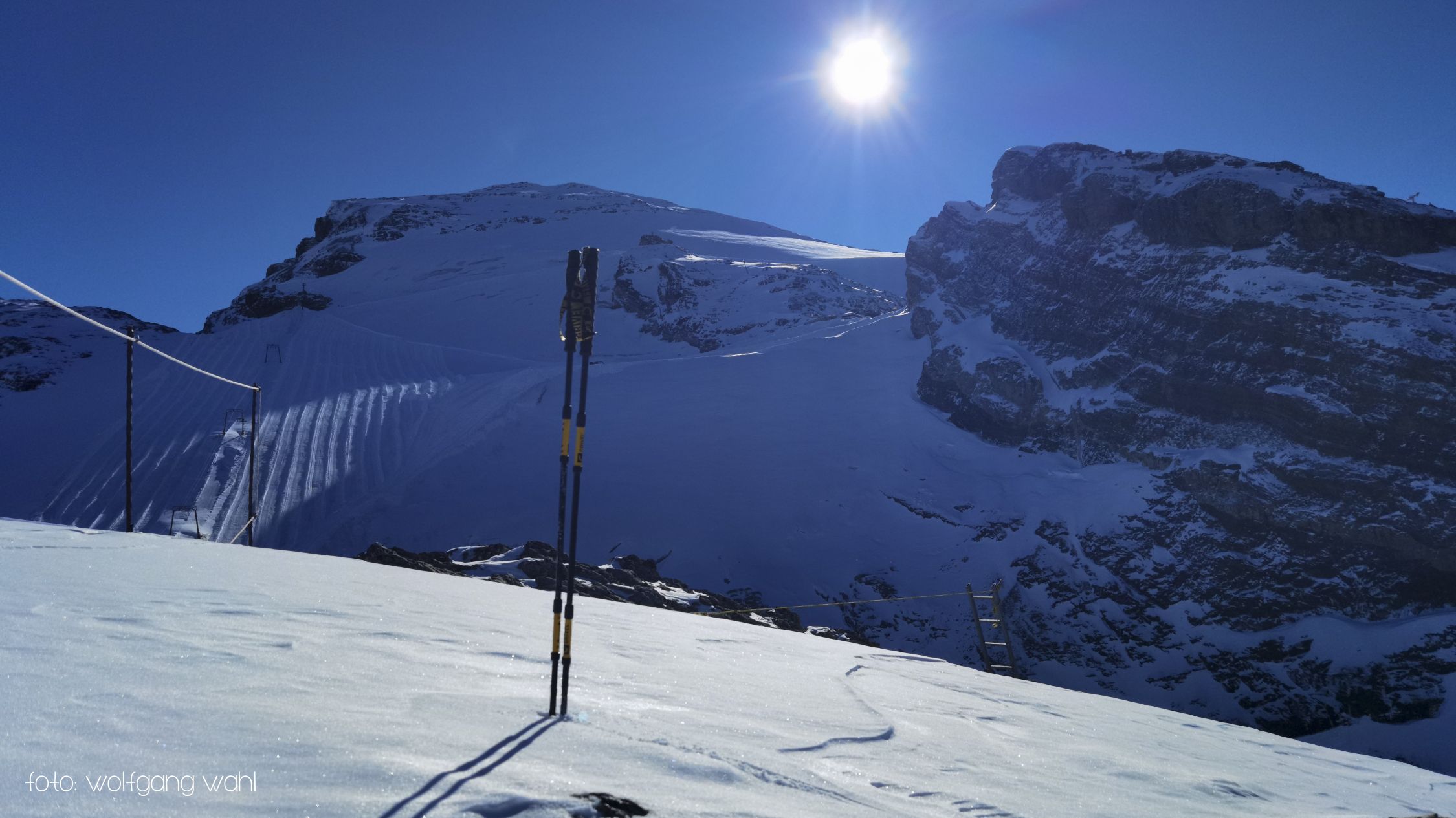 Super Bedingungen für diese Tour! Alle Seilbahnen waren aufgrund von Revisionen ausser Betrieb. Ausser den Arbeitern der Pistenfahrzeuge und Bagger am Gletscher beim Rotstöckli habe ich keinen Menschen getroffen. Das ist keine einfache Schneeschuhtour… die unterschiedlichen, teils schwierigen Bedingungen verlangen einiges ab an Kraft und Kondition.