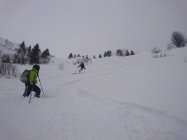 Super Pulver oben leider sehr viel Wind! Bei der Abfahrt kam dann leider der Regenfall, war aber erstaunlich gut zum fahren trotz teilweise Stollenbildung an den Skibelägen