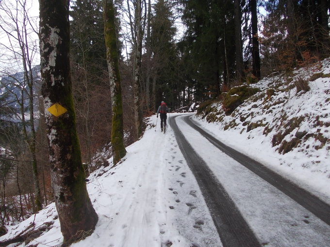 Wer auf Varianten verzichtet und stattdessen auf dem Rücken auf- und auch wiederabsteigt, hat hier eine recht sichere Tour, welche der heute fürs Gebiet ausgesprochenen Lawinenwarnstufe 3 auf jeden Fall gerecht wird.