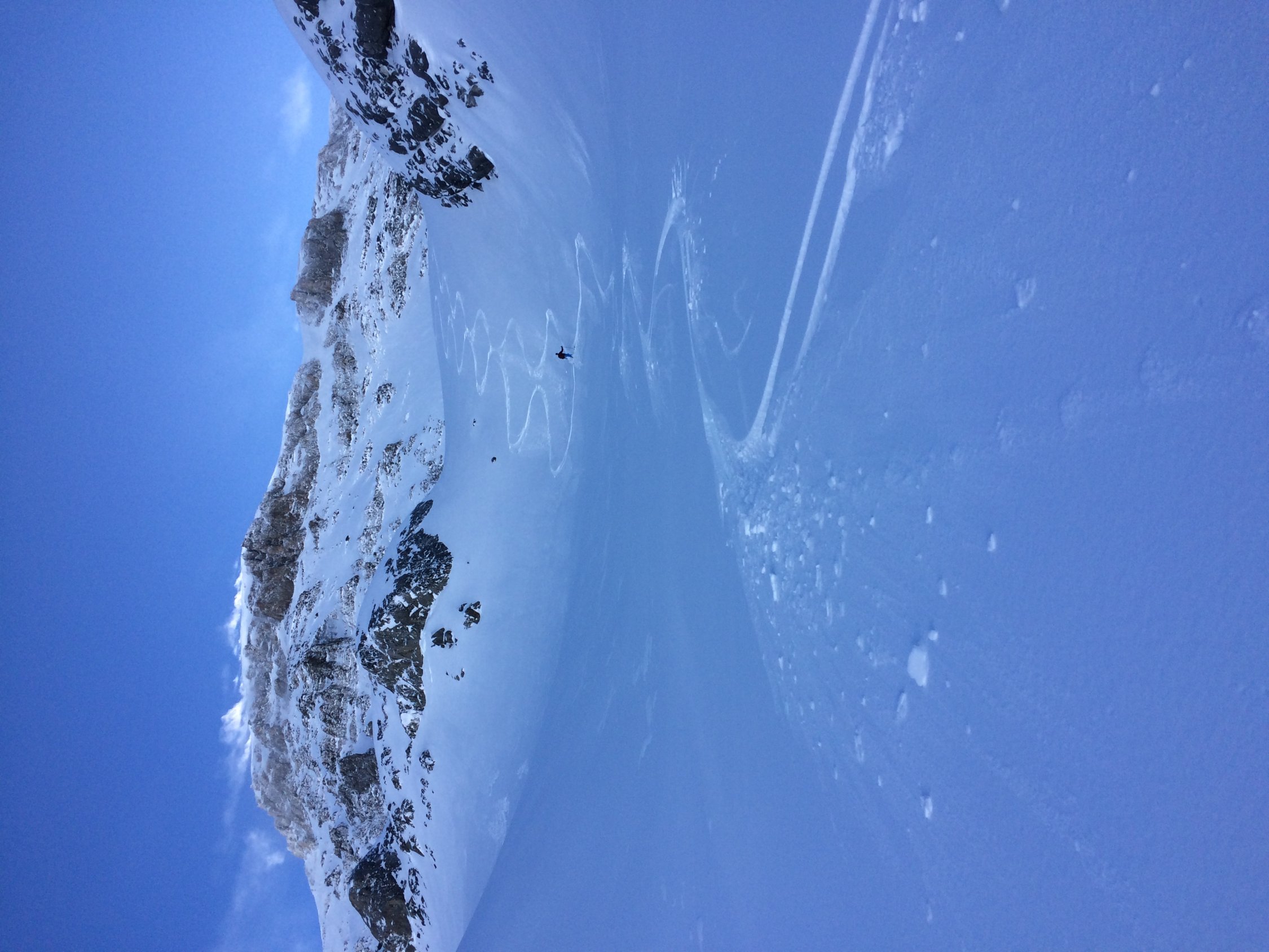 Einstieg bei Frühstücksplatz ist fast nicht ersichtlich. ACHTUNG es hat eine Wächte mit beängstigender grösse.