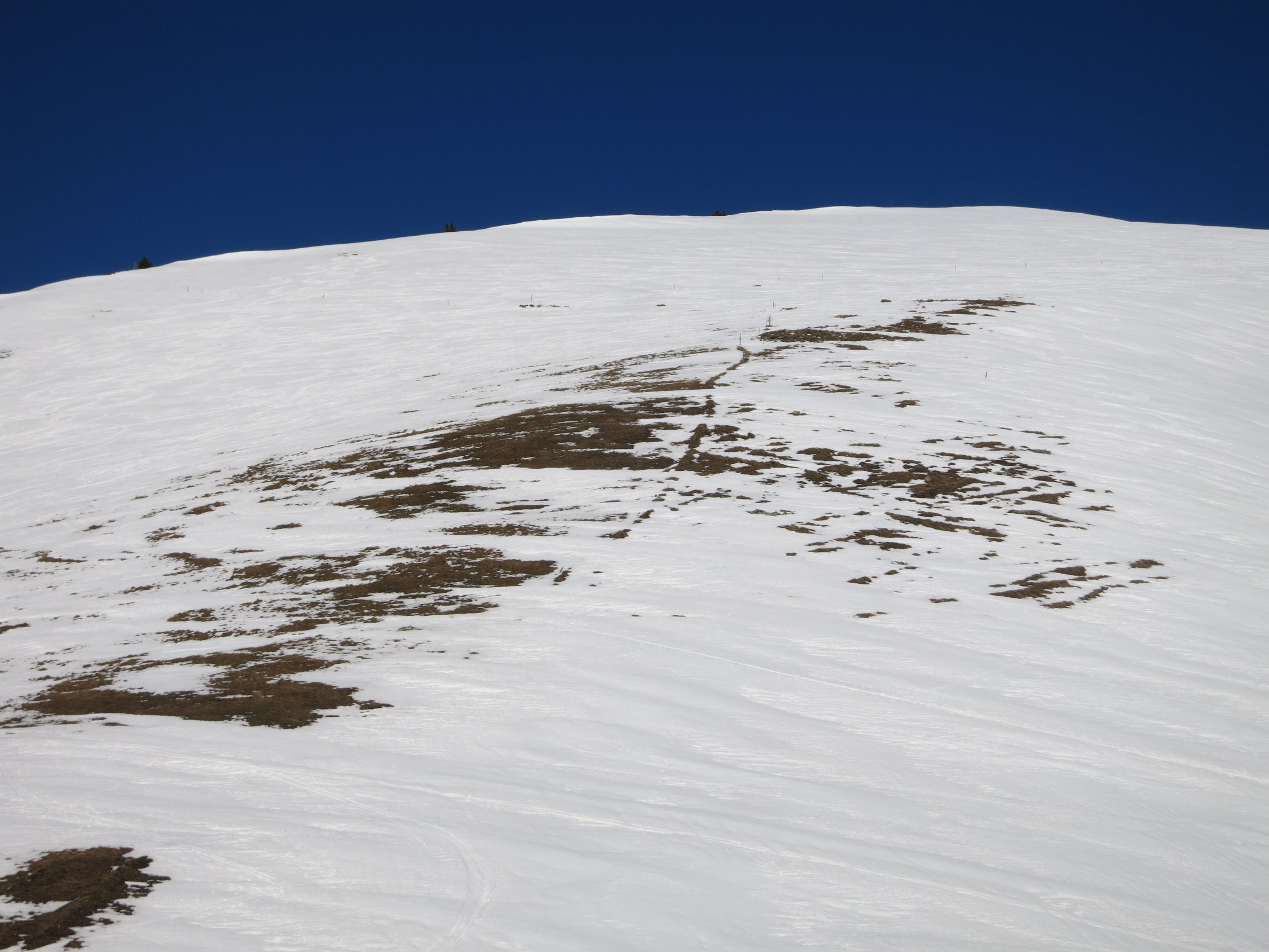 Im Aufstieg konnten wir die Ski bis auf eine Strassenüberquerung anlassen. Frühsommertour ansonsten. Gute Spur bis auf den Gipfel. Bei der Abfahrt dann schöne Schwünge in weichem Nassschnee. Unten war es dann auf den letzten beiden Hängen aper. Wen wunderts. Gute einfache Tour für heute nach unserer Chasseral Überquerung gestern im Eissturm.