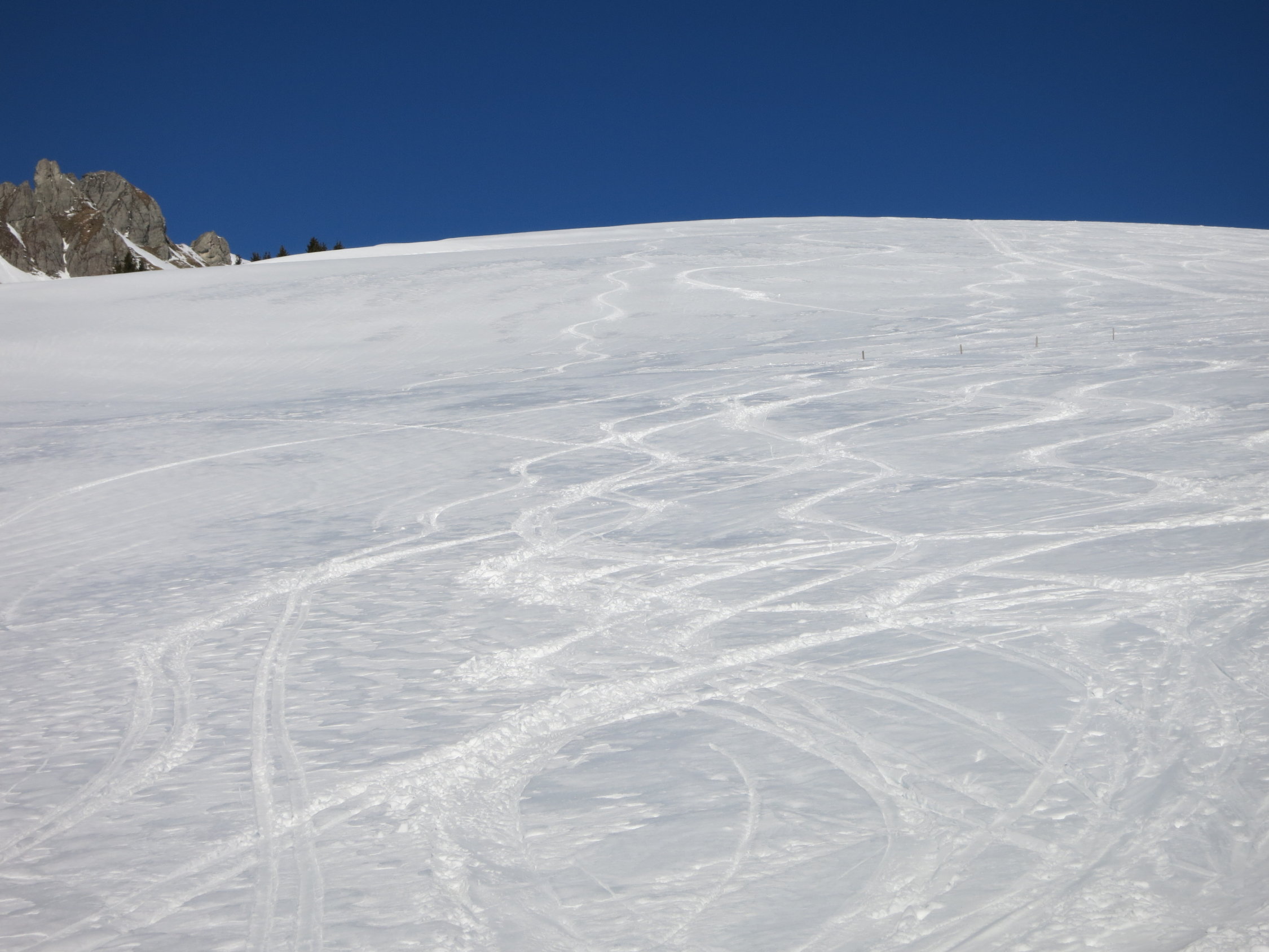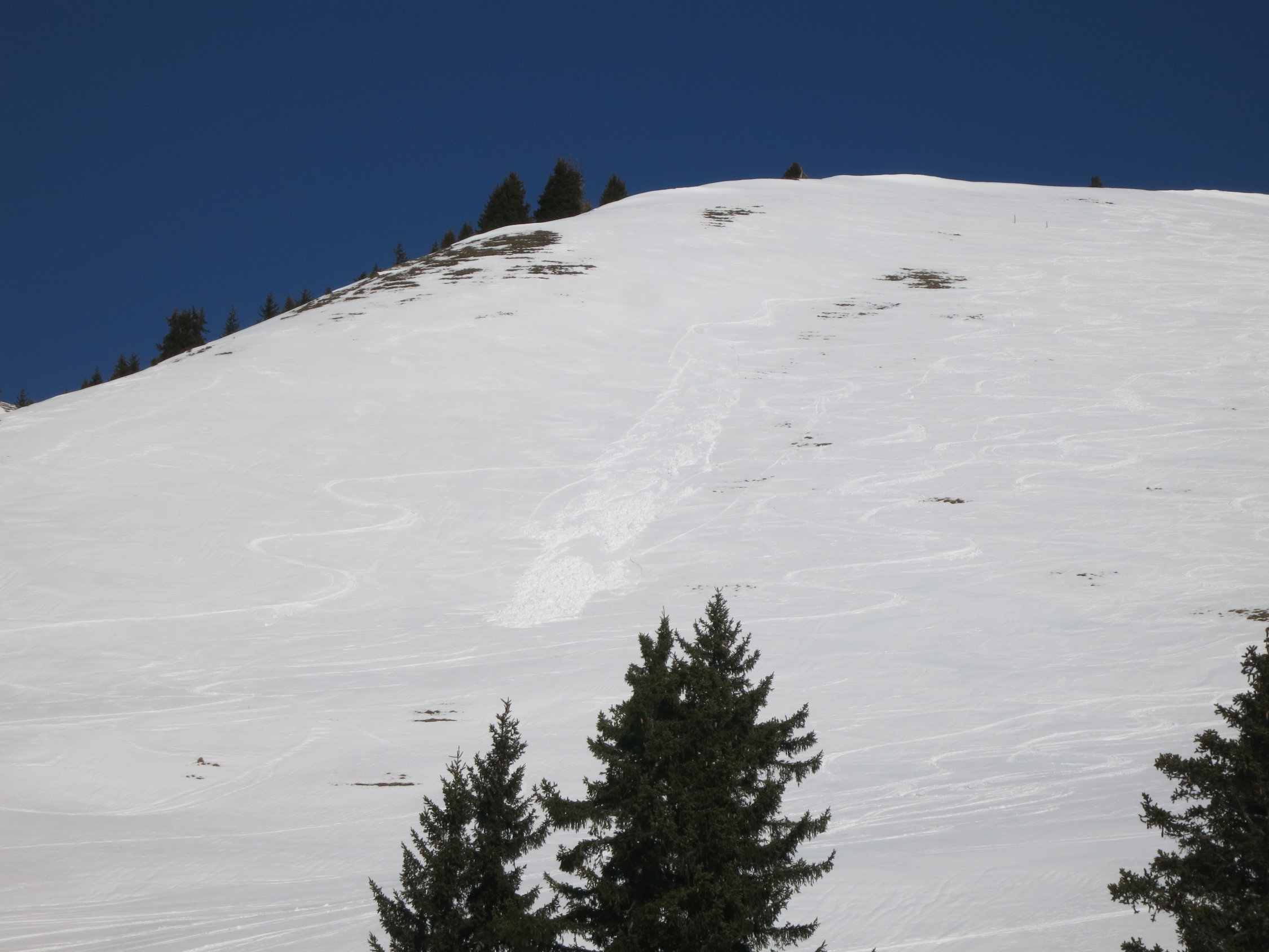 Kleiner Nassschneerutsch ausgelöst durch 2 Tourengänger. Harmlos aber trotzdem Achtung bei den Temperaturen.