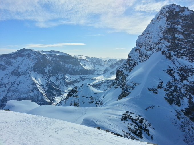 Schwitzen und schwimmen am Kärpf...so lautete die Devise für die ca. 25 Mitläufer, welche den sonnigen Tag noch nutzen wollten! Guter abgestrahlter Deckel beim Autstieg. Frühlingsverhältnisse sozusagen...im Februar. Hat Regenrinnen bin ca. 2400 m. Aber noch gut geschlossene Schneedecke. Bis zum Gipfel flossen bei allen einige Schweisstropfen! Abfahrt für mich als Boarder super, für alle Skifahrer je nach Können mehr oder weniger...;-).