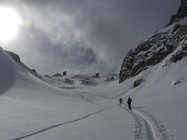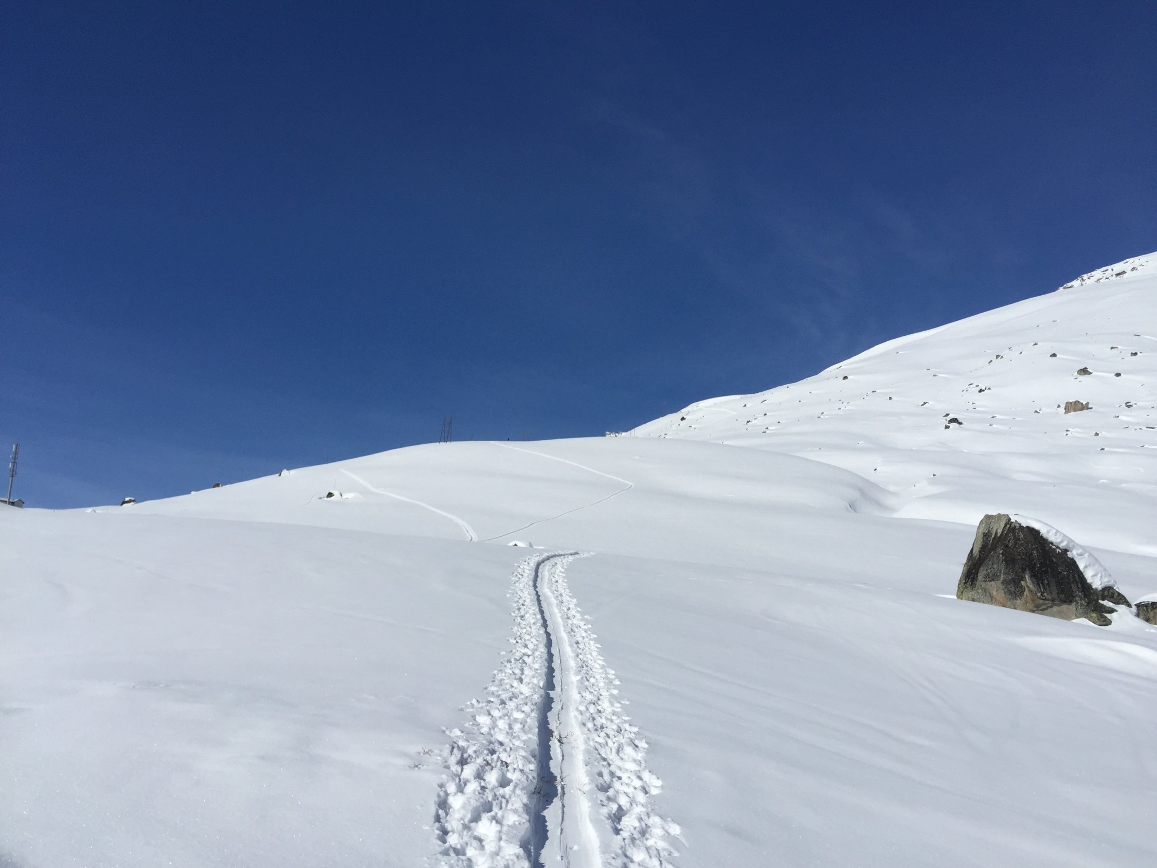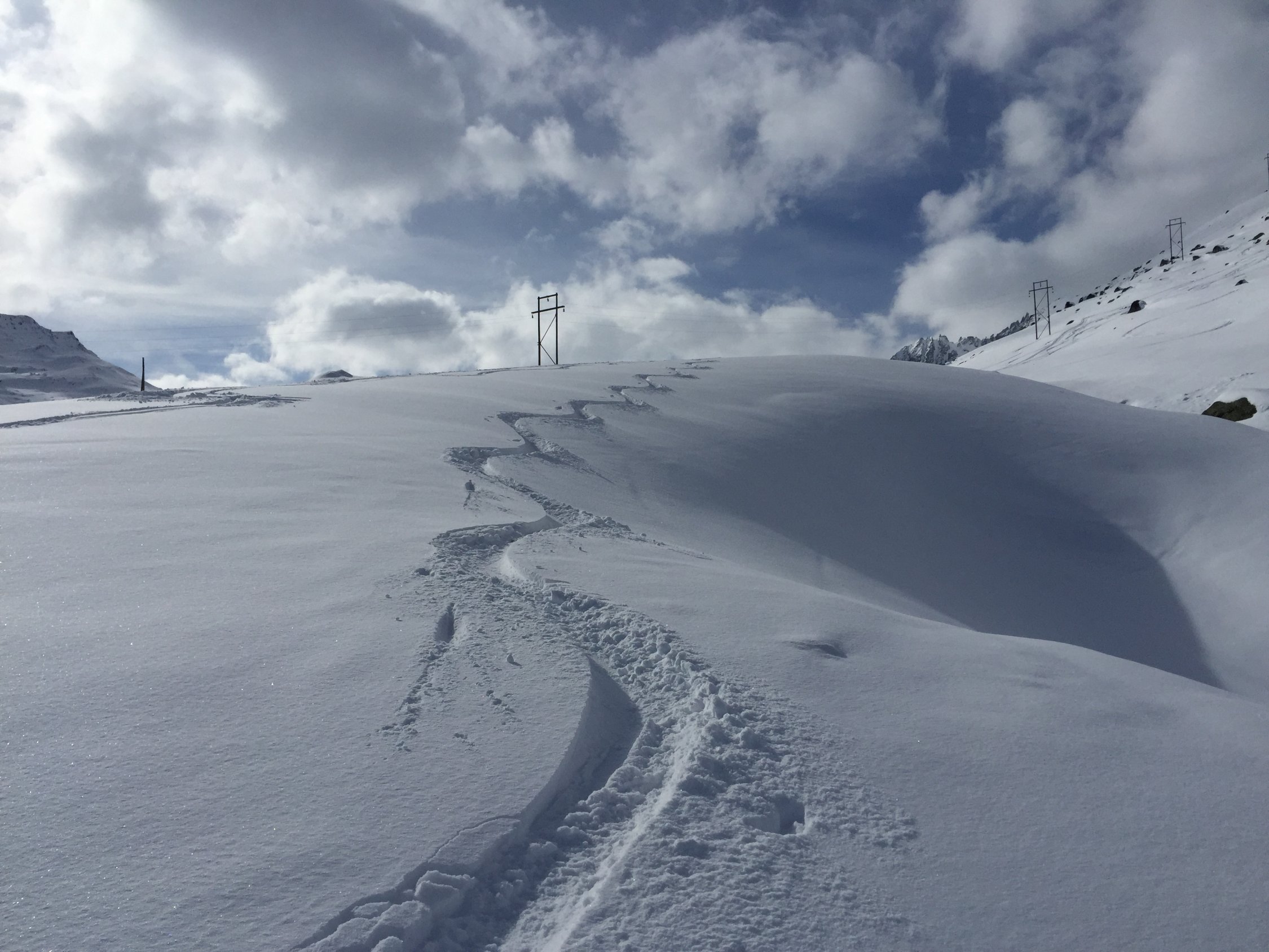 Heute führte mein Weg nach Realp, da ich nach längerer Zeit mit Touren in den Voralpen oder im Schwarzwald einmal wieder eine Tour mit hochalpinem Ambiente erleben wollte. Das Chli Bielenhorn respektive die untere Bielenlücke war das Wunschziel. Ich war relativ spät dran (Abmarsch 10.20 Uhr) und gab deshalb, was ich konnte, um sicher noch bei gutem Wetter unten zu sein. Denn die Staulage von Süden begann zu wirken, Richtung Rotondo sah man massiven Windeinfluss, und auch der Gale versteckte sich bereits in einer Wolke. Aber alles blieb hier gut, ausser, dass ich wirklich "auf dem Schnauz" war oben, wie man so schön sagt. Man macht halt beträchtlich Höhenmeter und vor allem auch Strecke... Die Gipfelrast (ich ging am Ende auf die untere Bielenlücke, wo heute erst ein Tourengänger war und noch viel Platz für die Abfahrt) fiel kurz aus wegen kaltem Wind. Die Abfahrt war dann schlicht genial, oben fast ein halber Meter Pulver und nach ein bisschen Wiederaufstieg Richtung Tätsch auch dort an abscheinigen Hängen immer noch Pulver gefunden bis zuunterst! Das war Klasse heute...