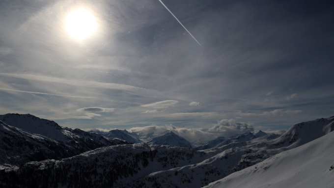 Im unteren Bereich kaum Wind, ab etwa 1800m zunehmend stürmischer Wind aus Süd. Kalt!