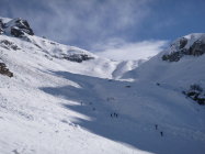 Gute Aufstiegsspur vorhanden, unten bei Matten Südhang Aufstiegsspur teilweise vereist (morgens um 8:00 Uhr). Vom Skidepot Fussmarsch zum Gipfelkreuz gut gespurt. Abfahrt (ca. 10:00 Uhr) oben stark verblasen, dann Pulver und teils Bruchharst, durchs Alpeltitälli alles verspurt und holperig, letzter Südhang (Matten) frühlingshaft.