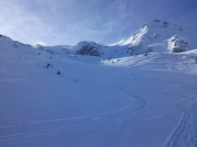 Ofen recht ausgeblasen, SW Flanke recht windgedeckelt. Ein paar NO hänge waren schön zu fahren. Im Talboden unterhalb des Ofen teils wenig Schnee, vorsichtig fahren lohnt sich. Südwest &-ostseiten sahen verdächtig gut aus. Fast alles gefahren wurden was das Gantrisch zu bieten hatte ;) .