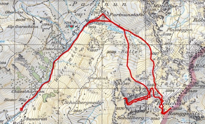 Schollberg (2570m): St.Antönien Partnun Silbertäli Wintergipfel