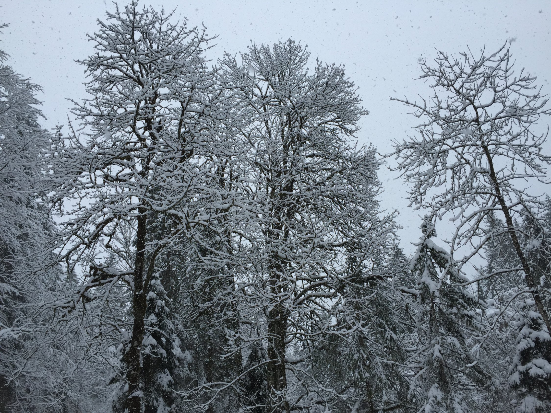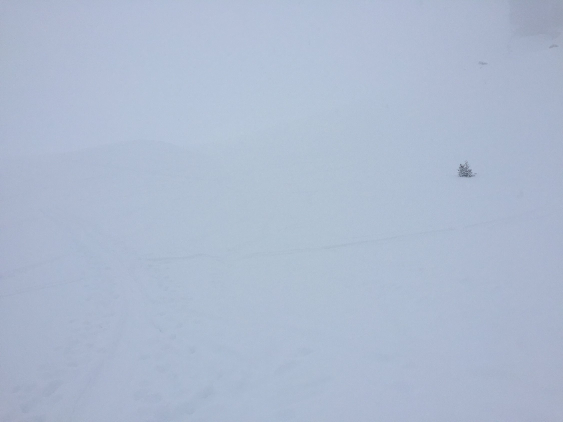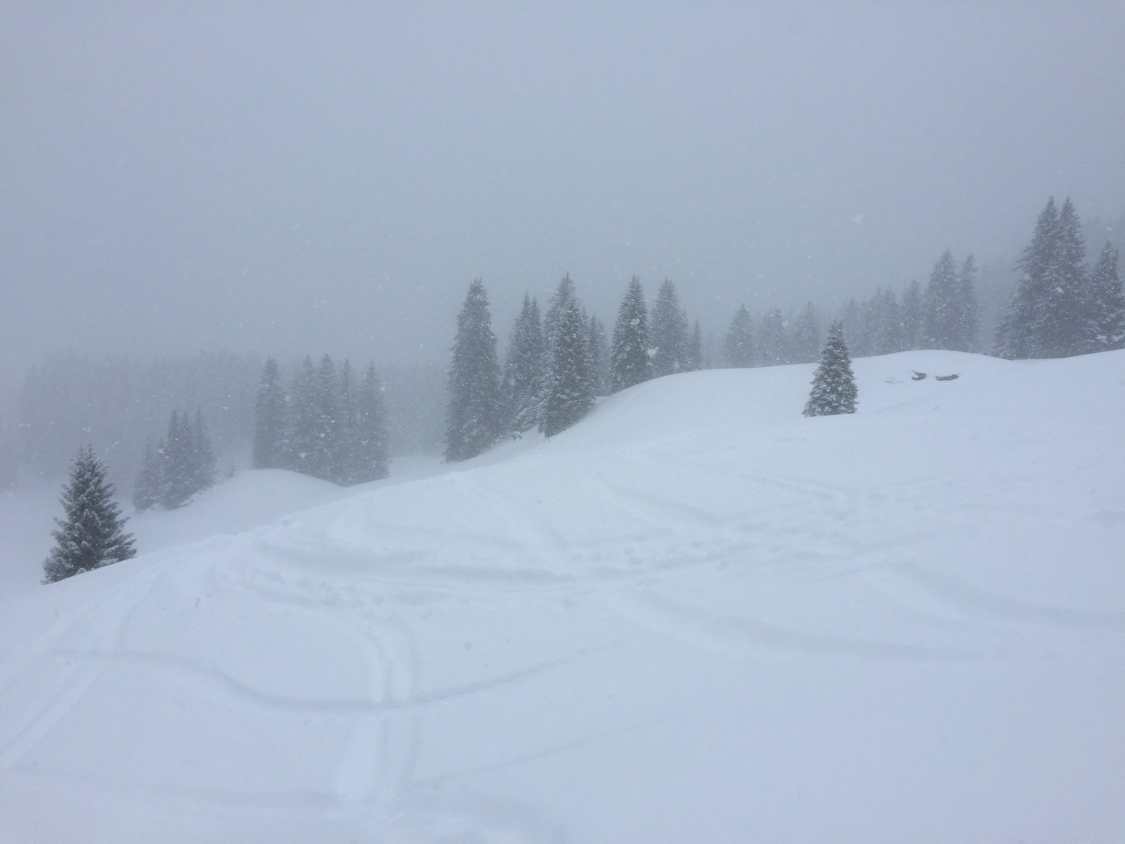 um 12:00 bei leichtem Schneefall gestartet, während des gesamten Aufstiegs hat es leicht weitergeschneit und es war absolut Windstill.