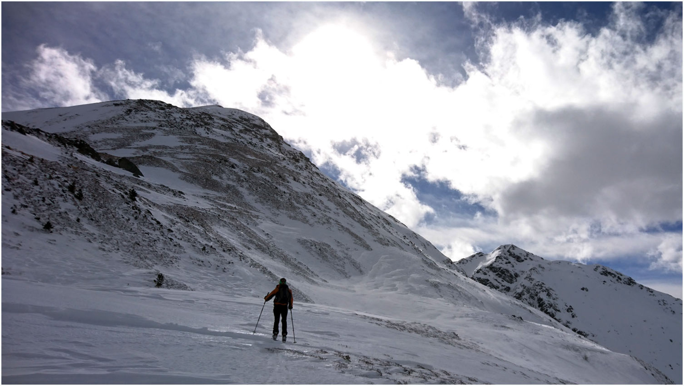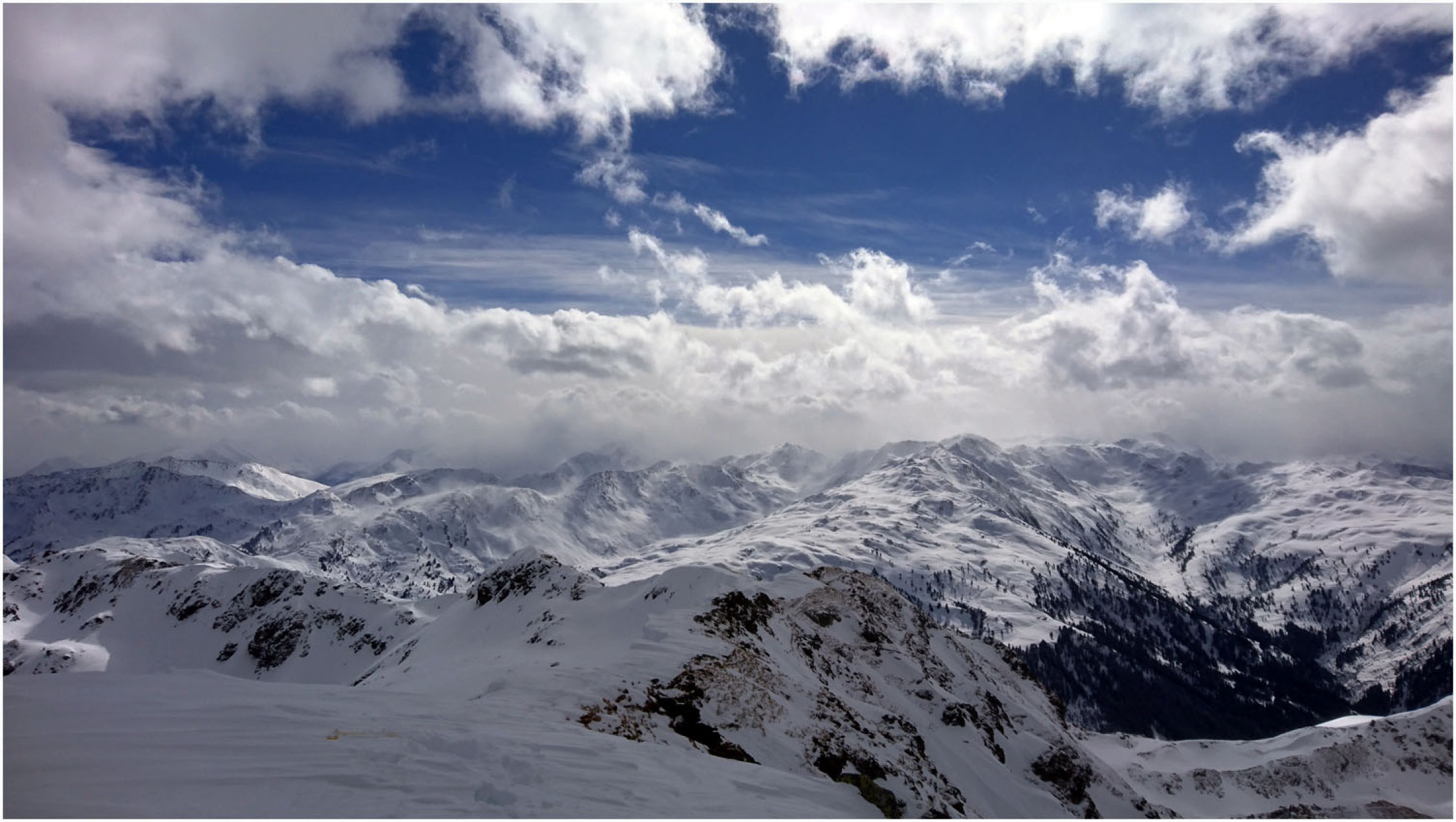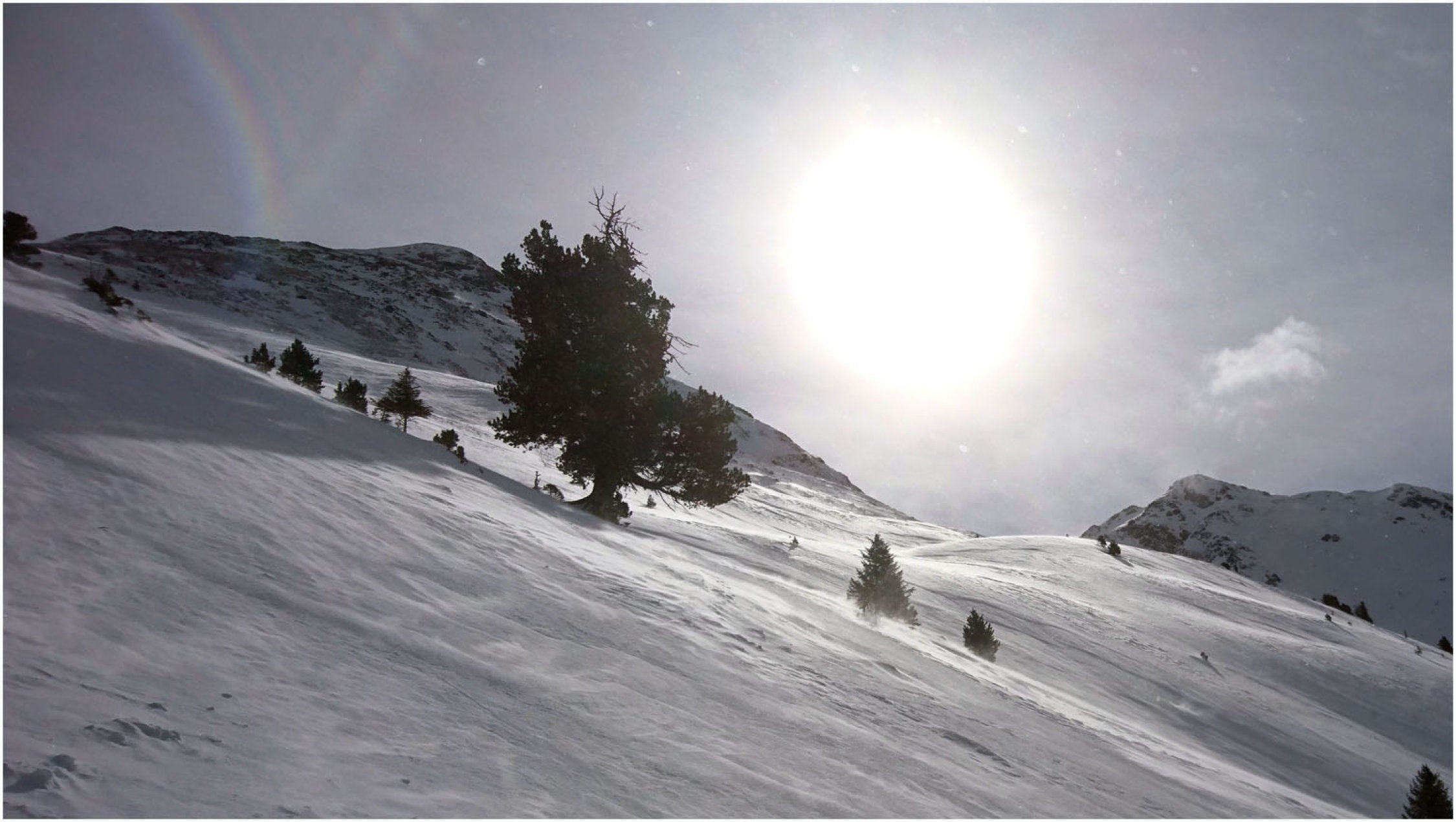 Auf der ganzen Tour insgesamt recht rustikale Verhältnisse. Bis Greitalm festgefahrene, wenn auch dünne Schneedecke. Ab dann neue Spur angelegt, bereits bis Farmkehram stark wechselnde Bedingungen, zwischen einem halben Meter Triebschnee und Harsch war alles dabei. Ab Farmkehralm mehrheitllich verblasen, teilweise stark eingewehte Mulden, dann wieder Harsch und/oder kein Schnee. Ab Grat ausser ein paar aufgewehten Stellen alles abgeweht, Sommerweg bis etwa 100Hm unter dem Gipfel gut begehbar, stellenweise eisig. Letztes Stück dann Schneestapferei, auch hier teilweise grundlos, dann wieder Harsch.