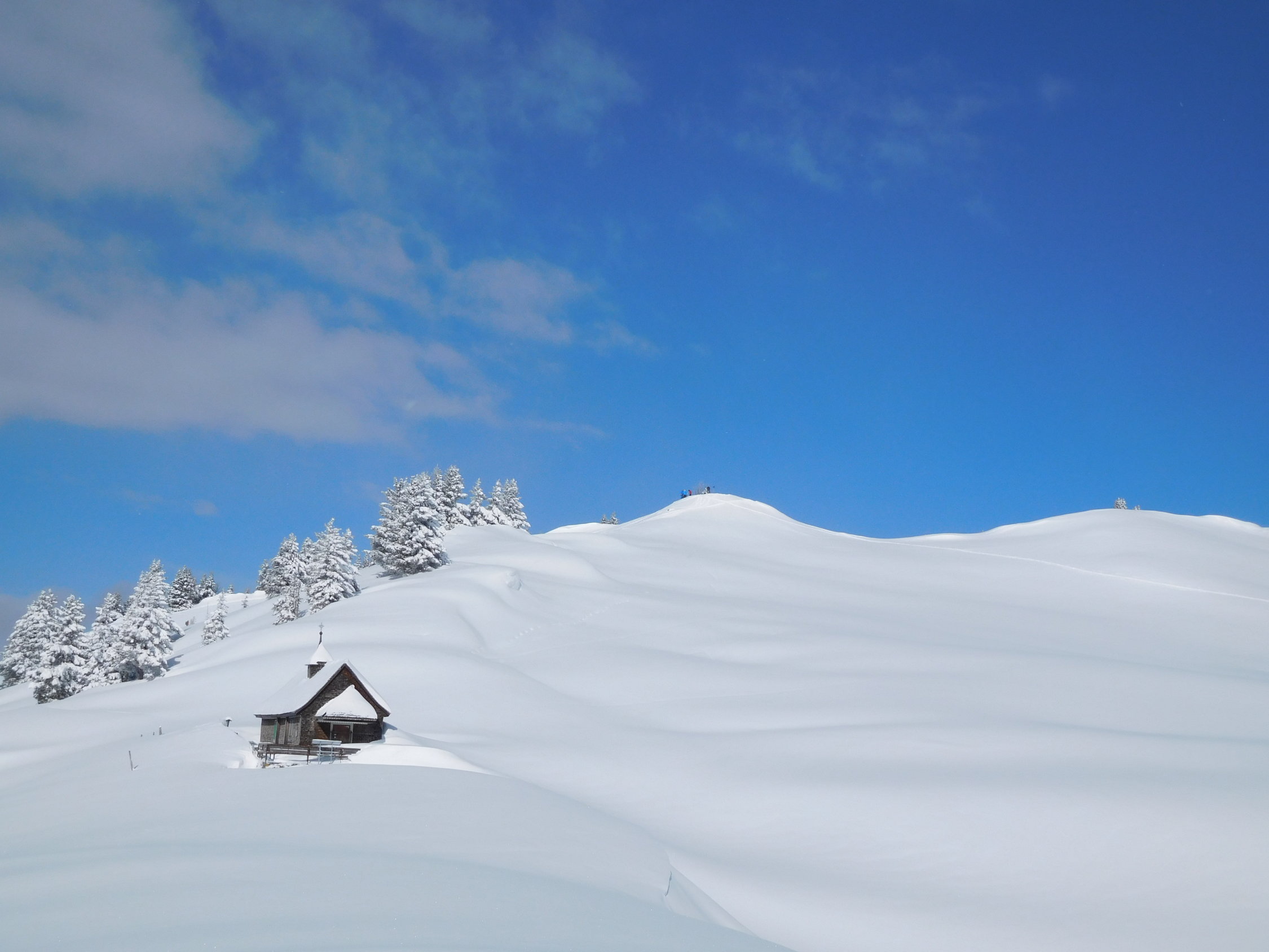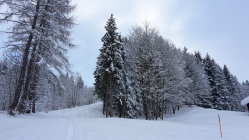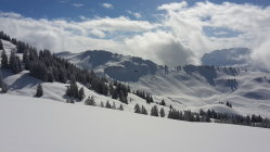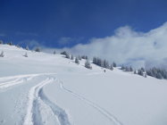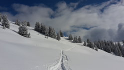 Laucherenstöckli (1753m): Von Illgau der Abfahrtspiste entlang bis Gipfel