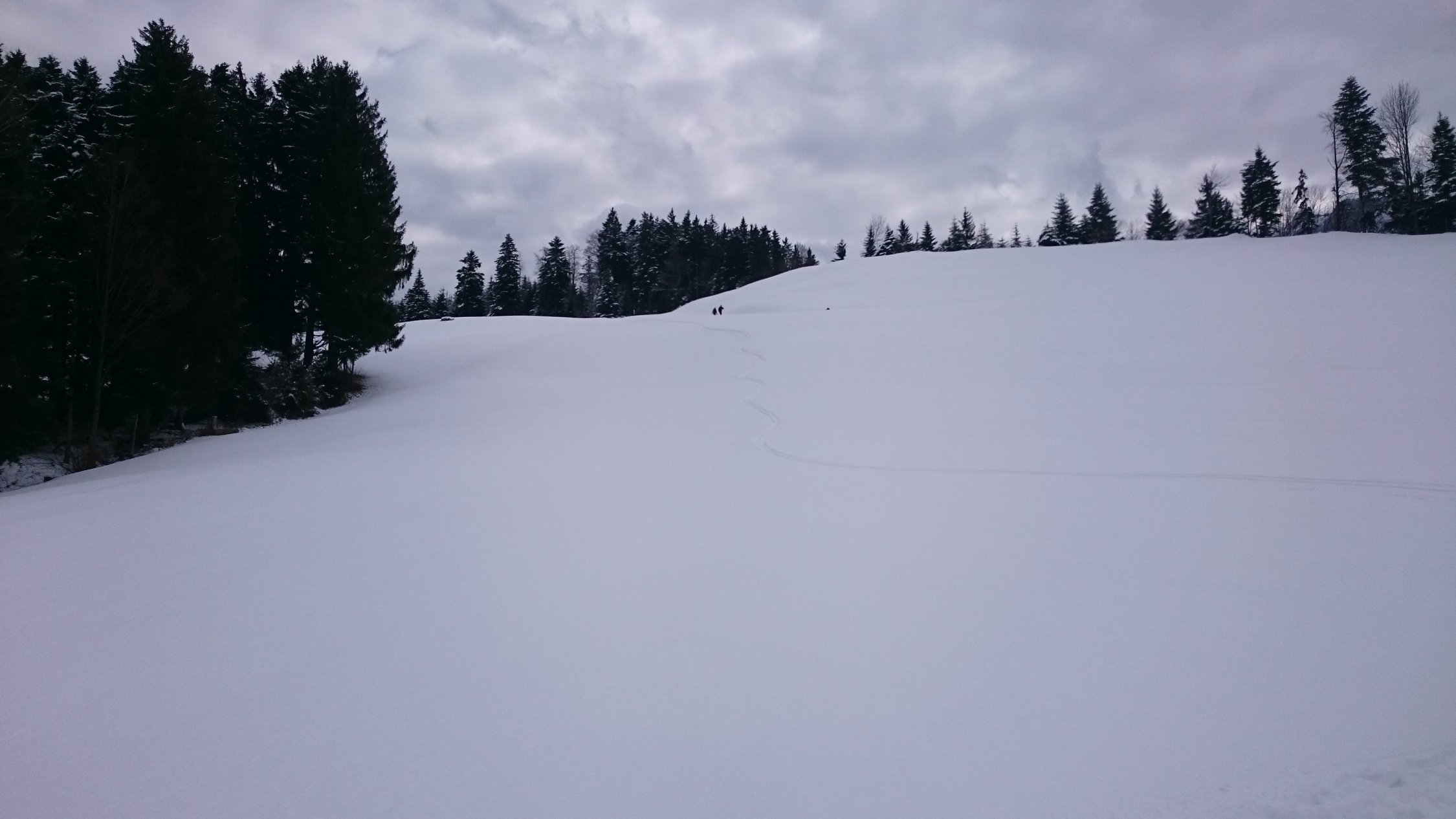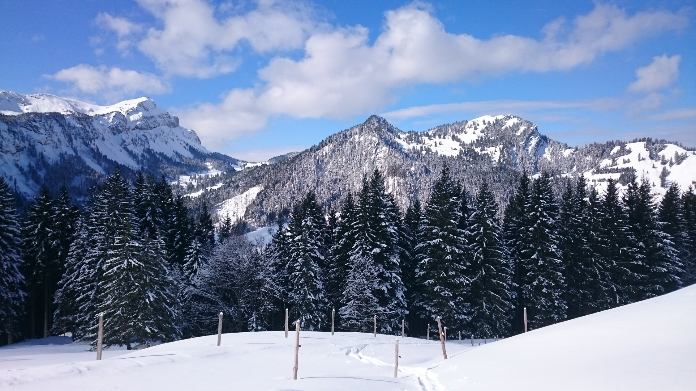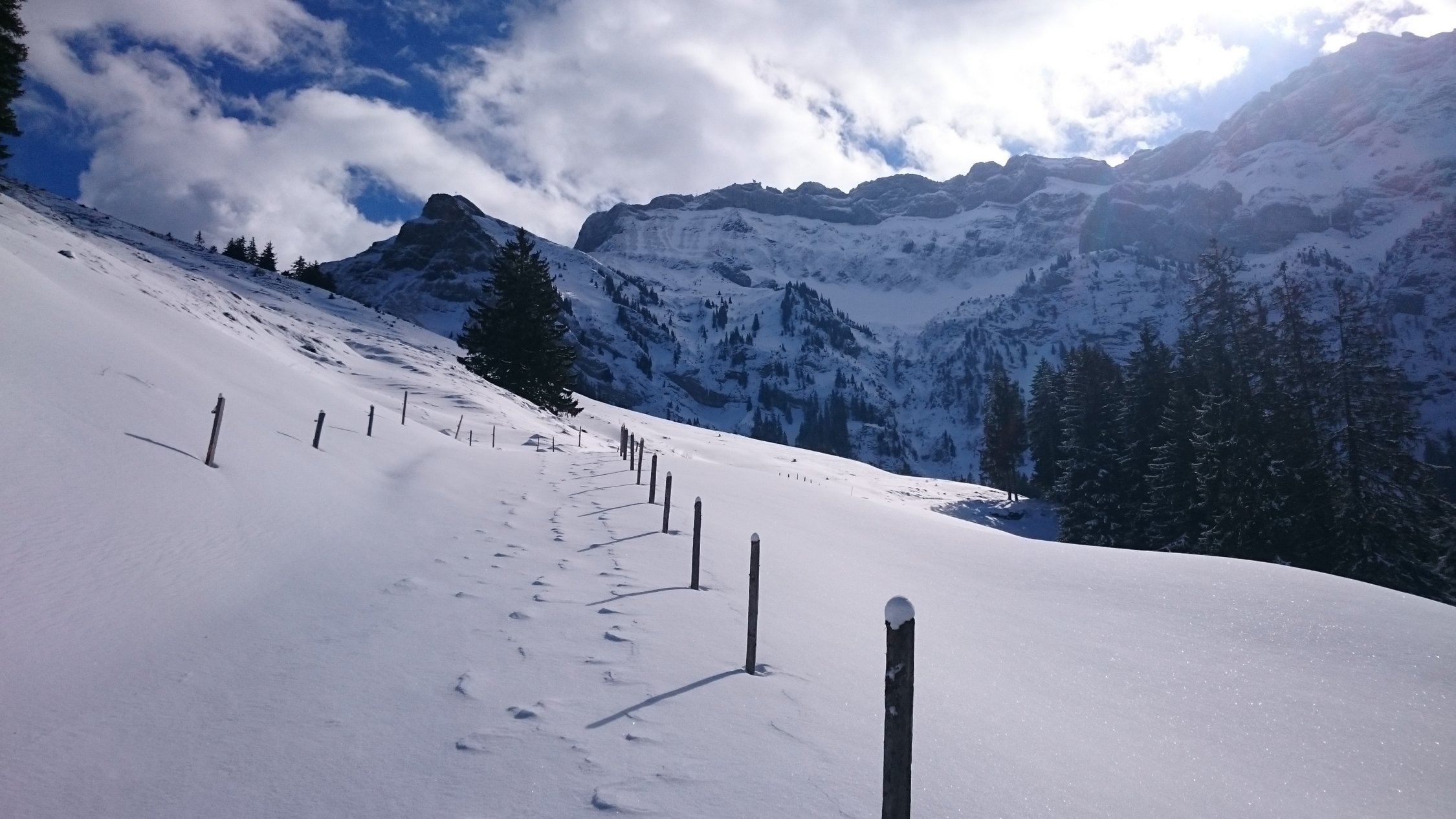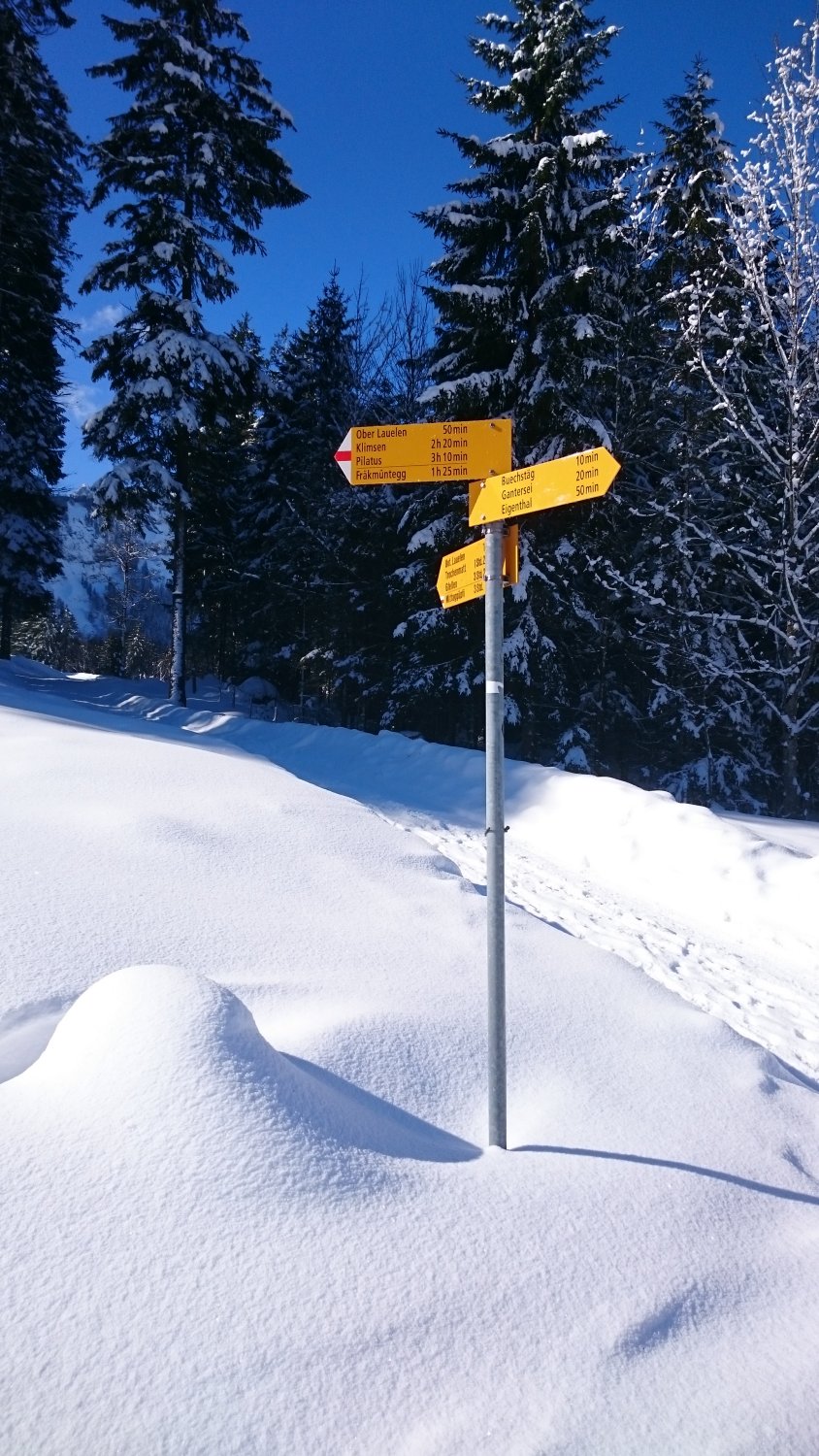 Bei der Abfaht vom Fräkmüntegg habe ich meist den Schlittelweg genutzt. Neben dem Weg oft hart gefrohren und abgeblasen.