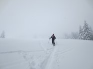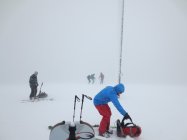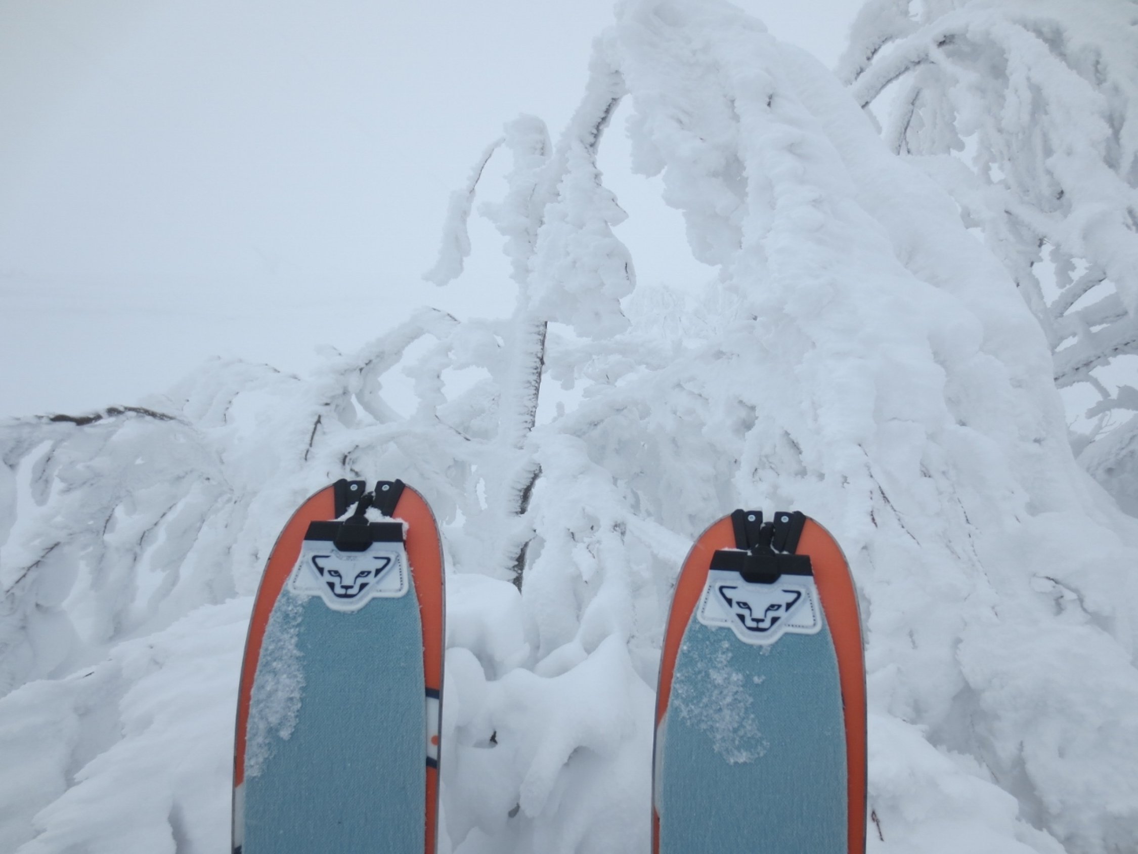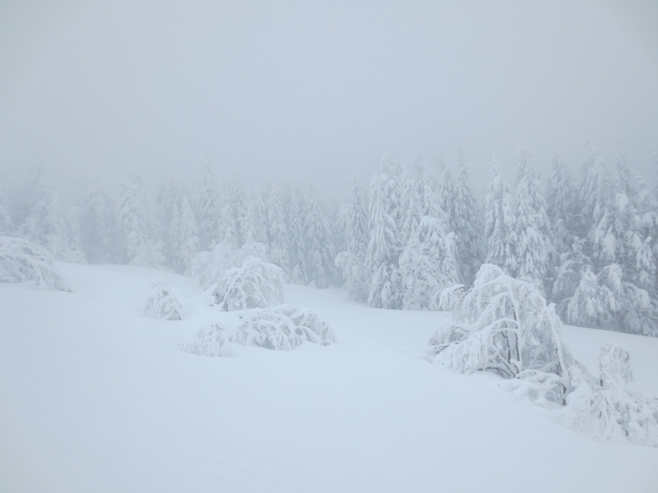 Bewölkt mit kurzen Schneeschauern. Im Gipfelbereich Nebel und strenger Wind, also eigentlich wie immer ;).