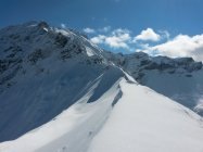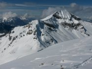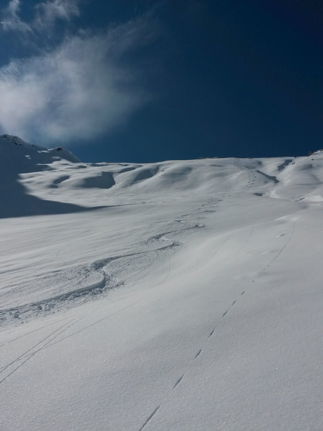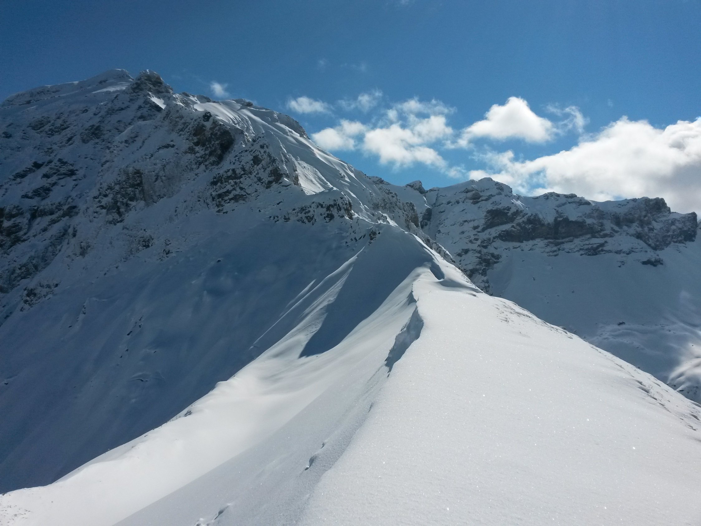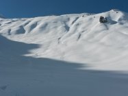 Der Aufstieg über die Westflanke war doch recht gut eingeschneit für eine solch exponierte Hangneigung.