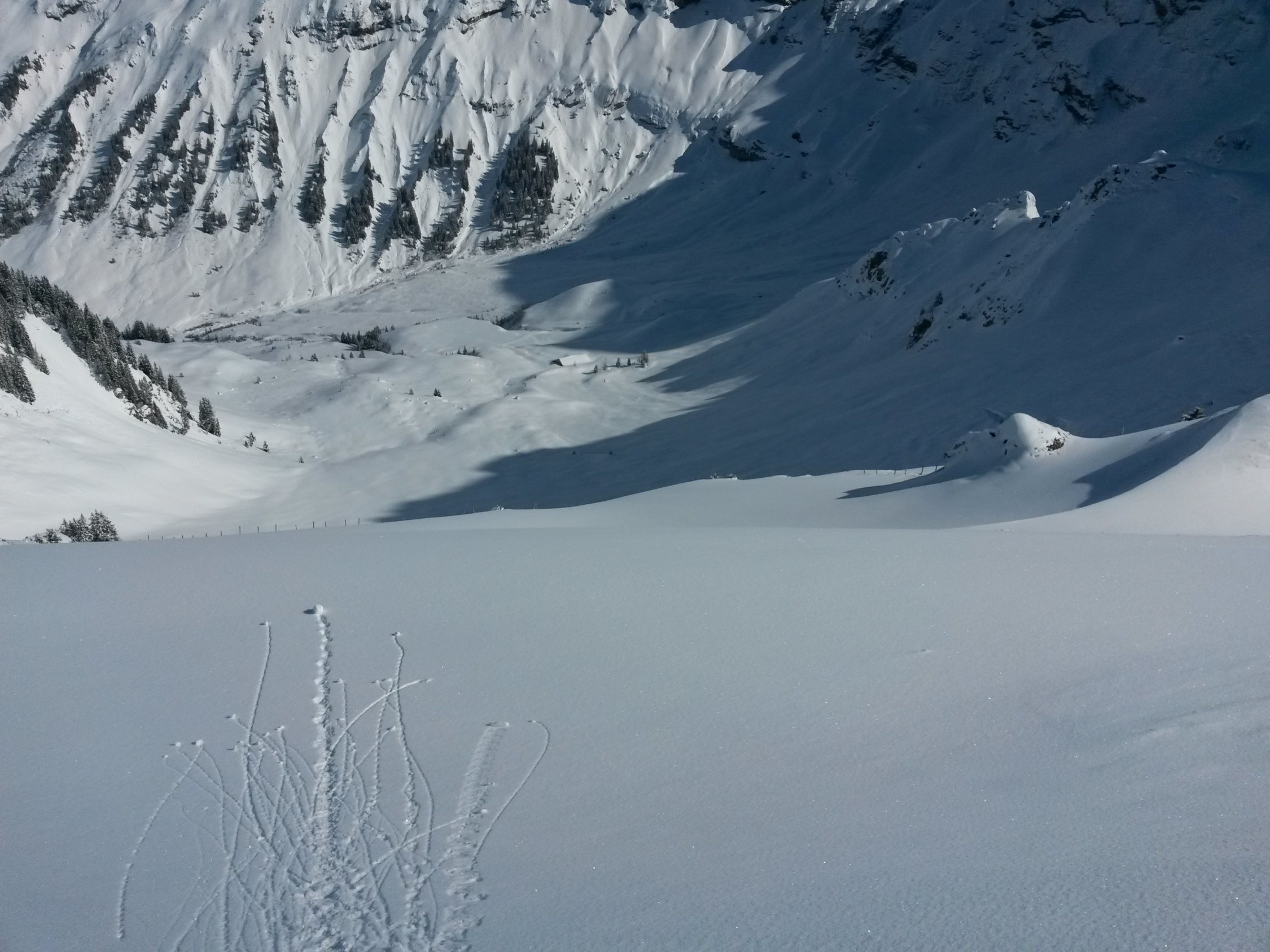 Top Verhältnisse fast wie im Januar. Die Luft war auch kurz nach Mittag noch angenehm kühl. Start um 11:55 in Saxeten -3 C.