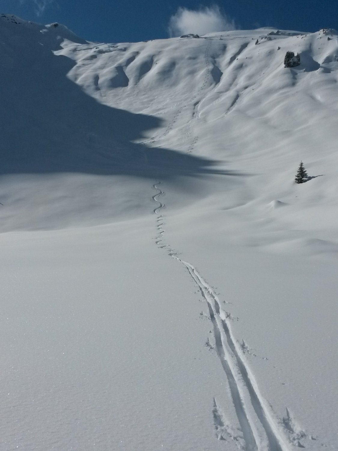 Ab dem oberen Mittelberg durfte ich alleine meine Spuren ziehen :-) so schön