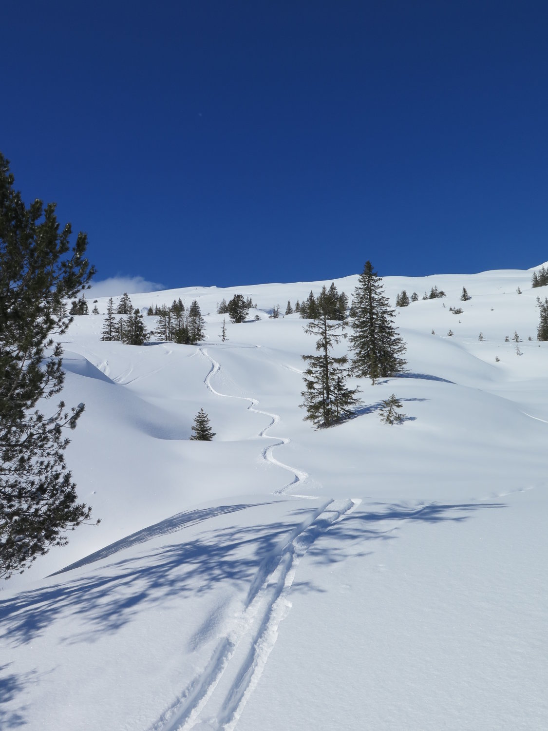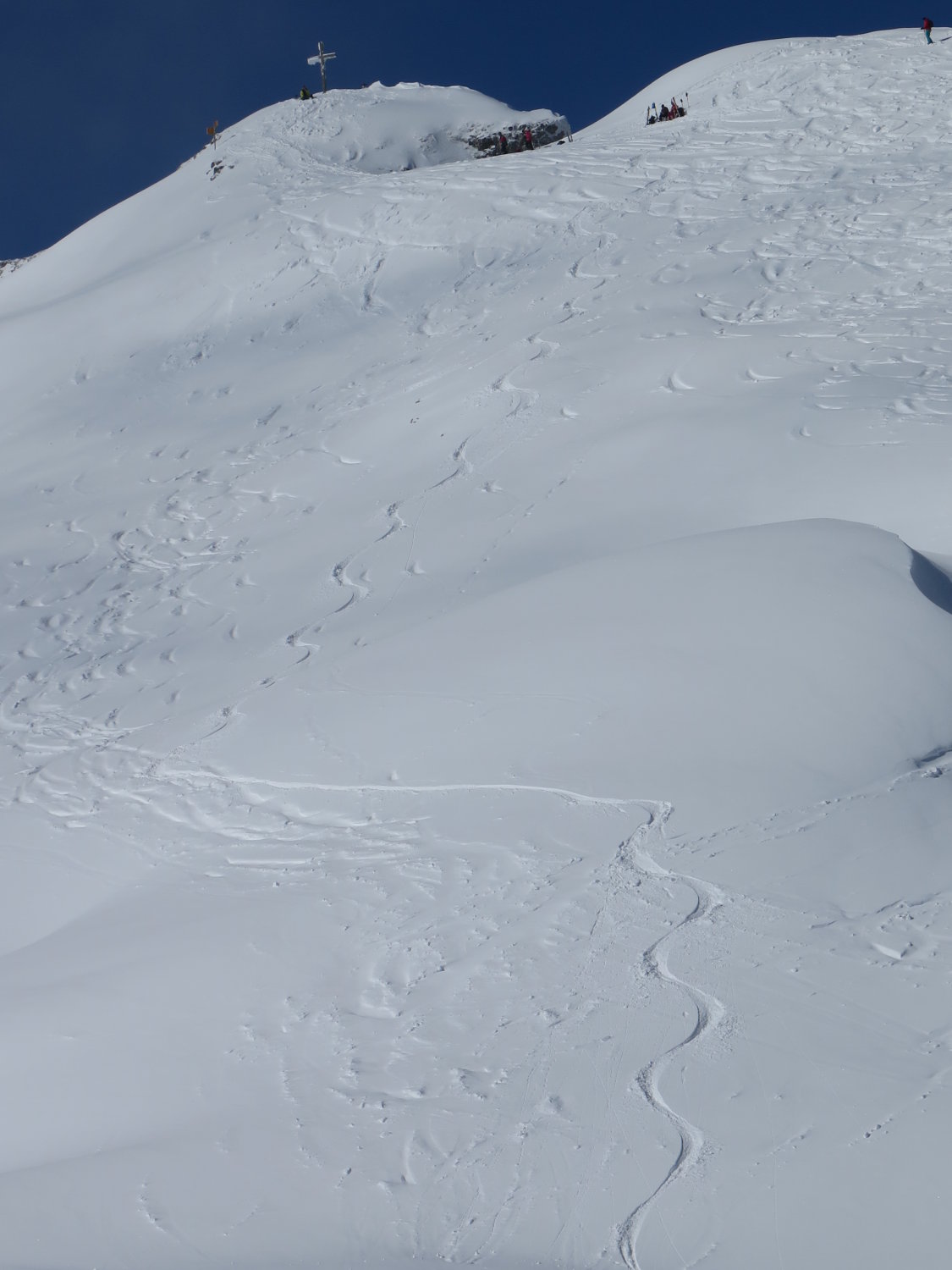 Bei der Abfahrt wurde der Schnee ab Alp Schlund schwerer. Oberhalb wunderbarer Pulver!