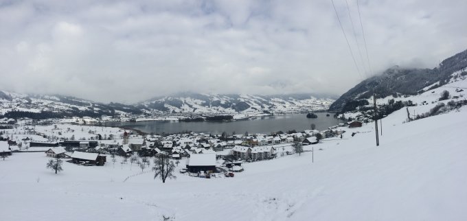 Über Nacht hat es bis ins Dorf geschneit und ich konnte im Lauerzer Oberdorf die Ski vor der Haustüre anziehen und meine eigene Spur durch den Tiefschnee ziehen. Weiter oben war ich froh, dass von der Waage her bereits Skitourengeher unterwegs waren und ich ihrer Spur folgen konnte.