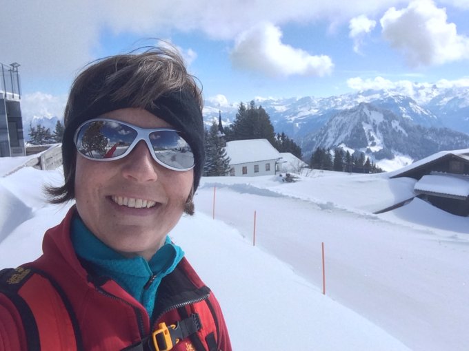 Die Abfahrt war herrlich, aber entweder war der Berg zu wenig steil, der Schnee zu schwer oder meine Ski zu wenig breit. Hat aber trotzdem Spass gemacht!!!