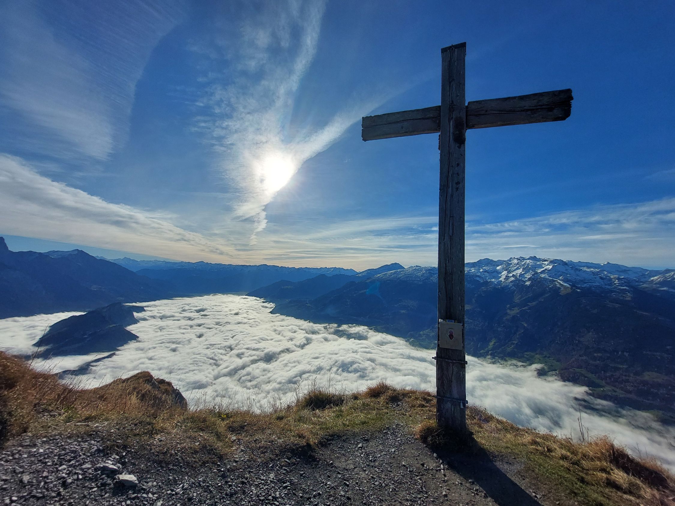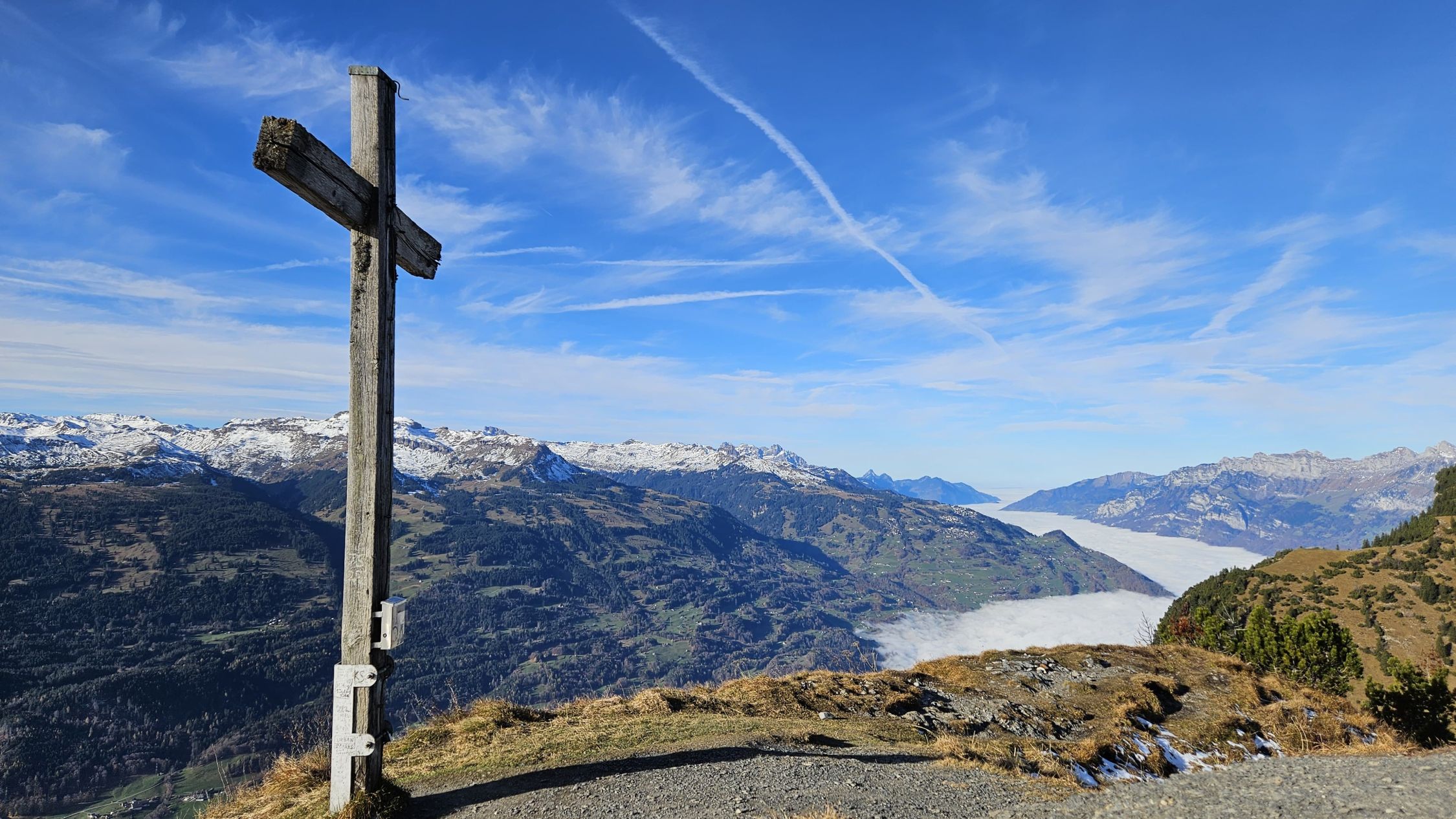 Nebelmeer über Sarganserland witd immer dichter, breitet sich nach oben aus