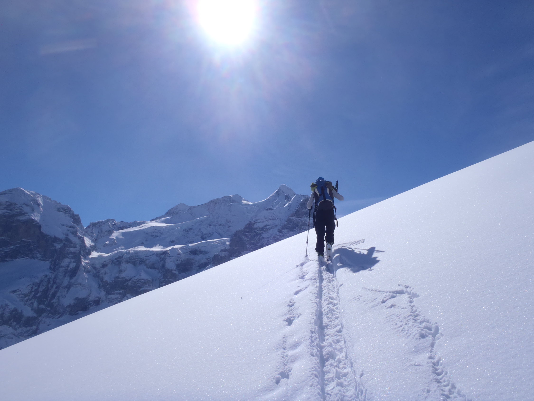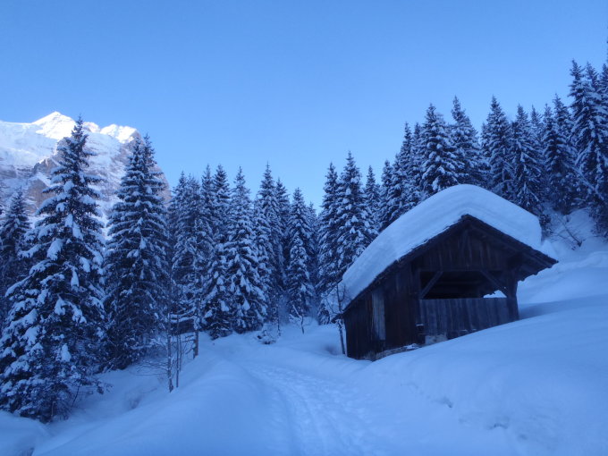 viel Schnee in Schwarzwaldalp bei Rosenlaui. ca. 15 cm feinster Pulverschnee vom Vortag. Fast die ganze Route selber gespurt.