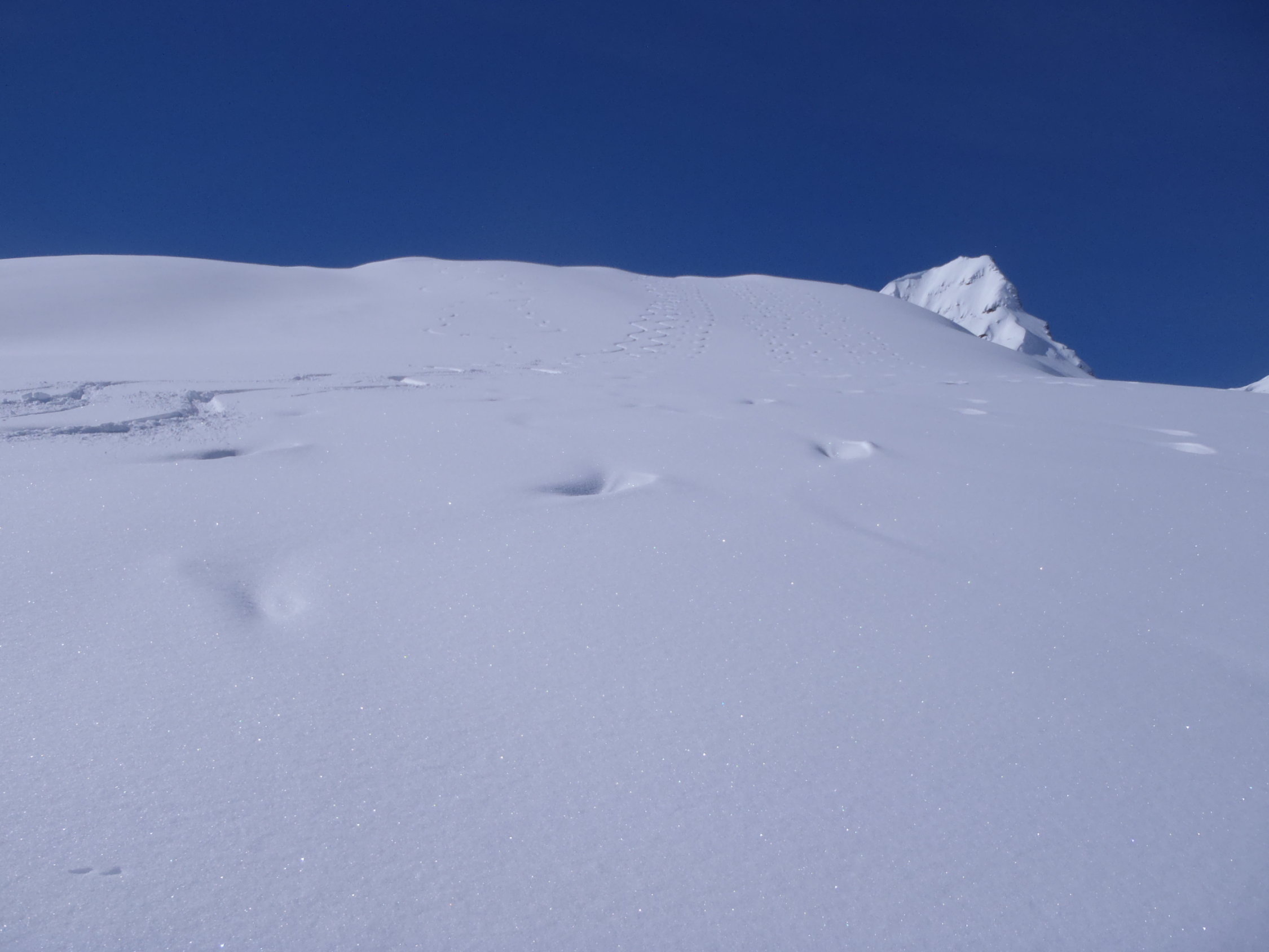 später Pulverschnee? Vielleicht höchstens auf dem Osthang von Bandspitz. Hat noch genug Platz oben.