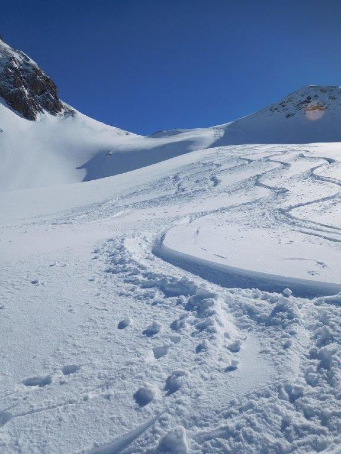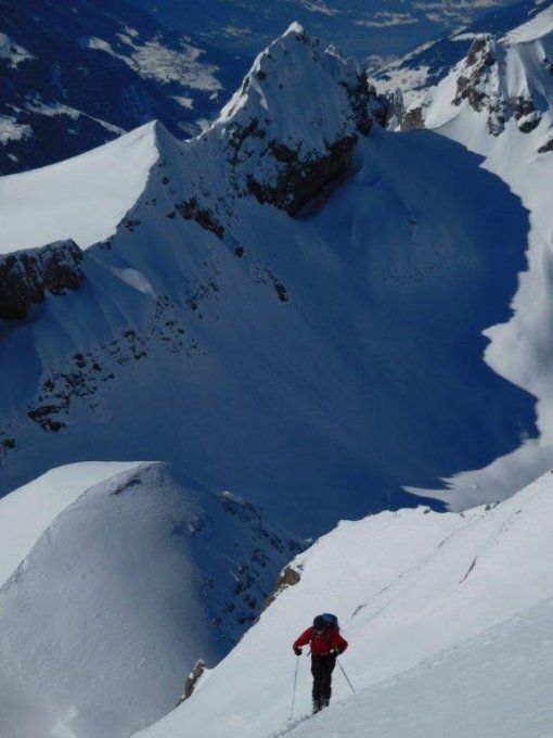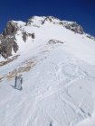 Gipfelhang südostseitig ab Skidepot direkt am Grat feiner Sulz.