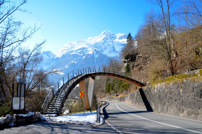 Bereits die Fussgängerbrücke ist eindrucksvoll. (Bin ja sonst ein Architektenschreck, aber diese Brücke ist hervorragend!)