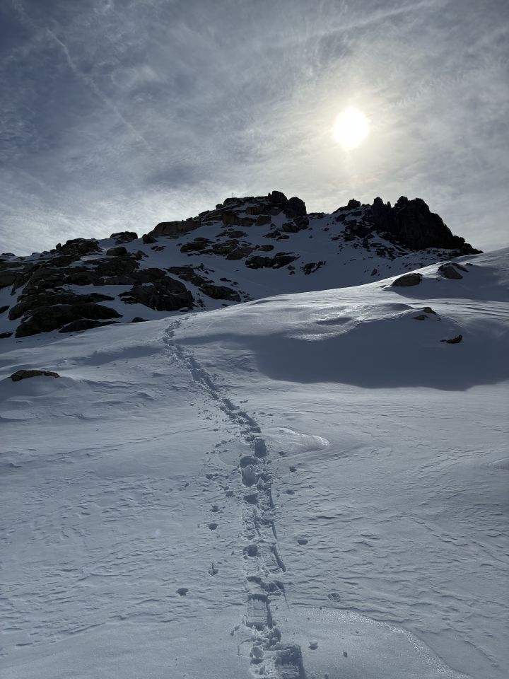 Ab Pkt. 2018 Schneeschuhe montiert und erst kurz vor Tiefenbach wieder demontiert. Teilweise viel Schnee, harte und weiche Stellen abwechselnd.