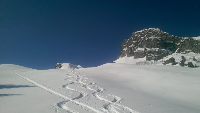 Unten federleichter Pulver, oben schön aufgeweichter Firn im Steilhang: ein Tourentag wie aus dem Bilderbuch.