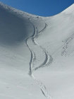 Es hat noch genügend Platz für eigene Spuren. Nordabfahrt haben bislang nur gerade etwa 10 Personen gemacht.
