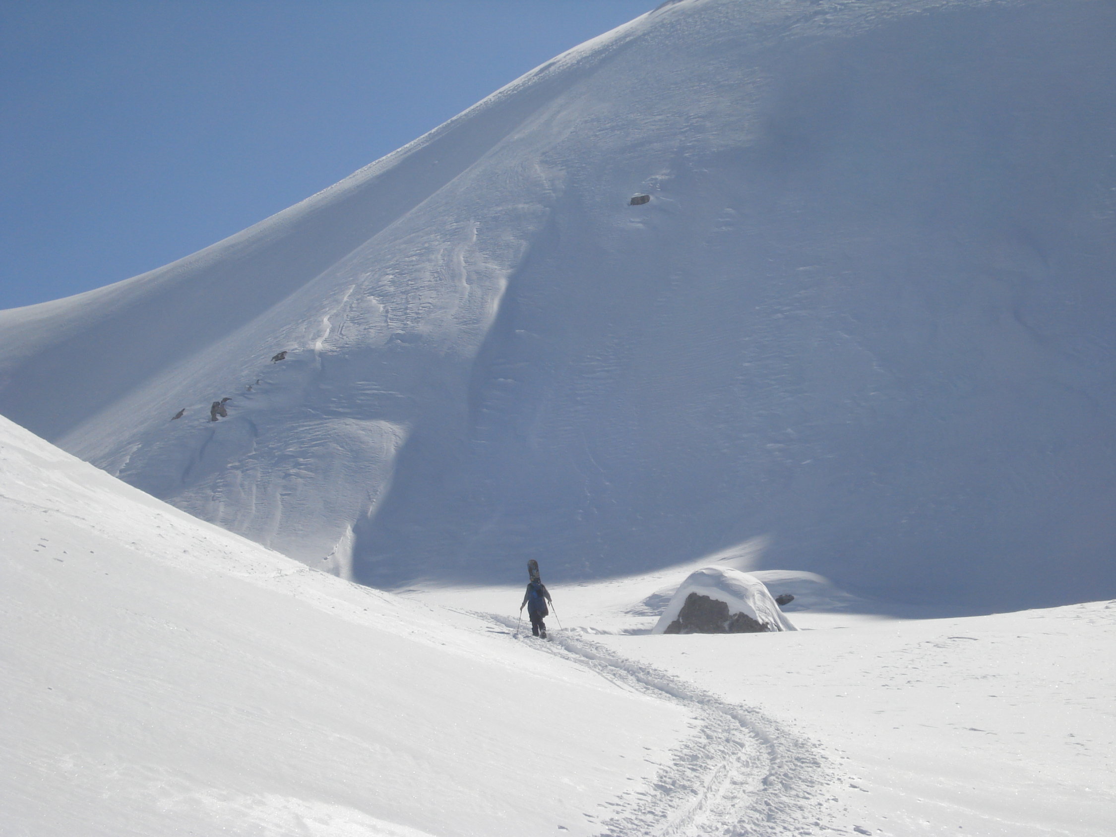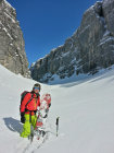Aufstieg: Gute, teilweise etwas steile und direkte Spur. Von zuunterst bis zuoberst Pulver. Sogar auf dem sonst abgeblasenen Glatten hat es genügend Schnee.