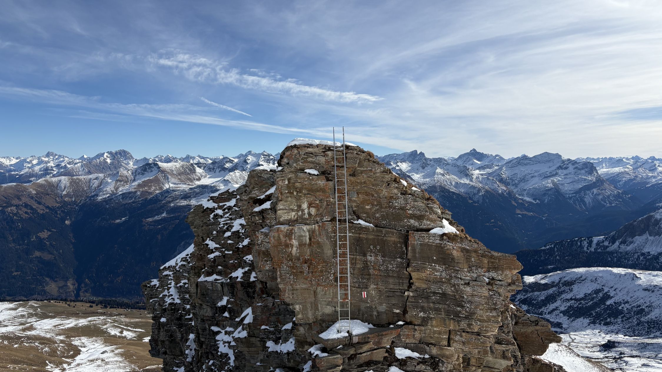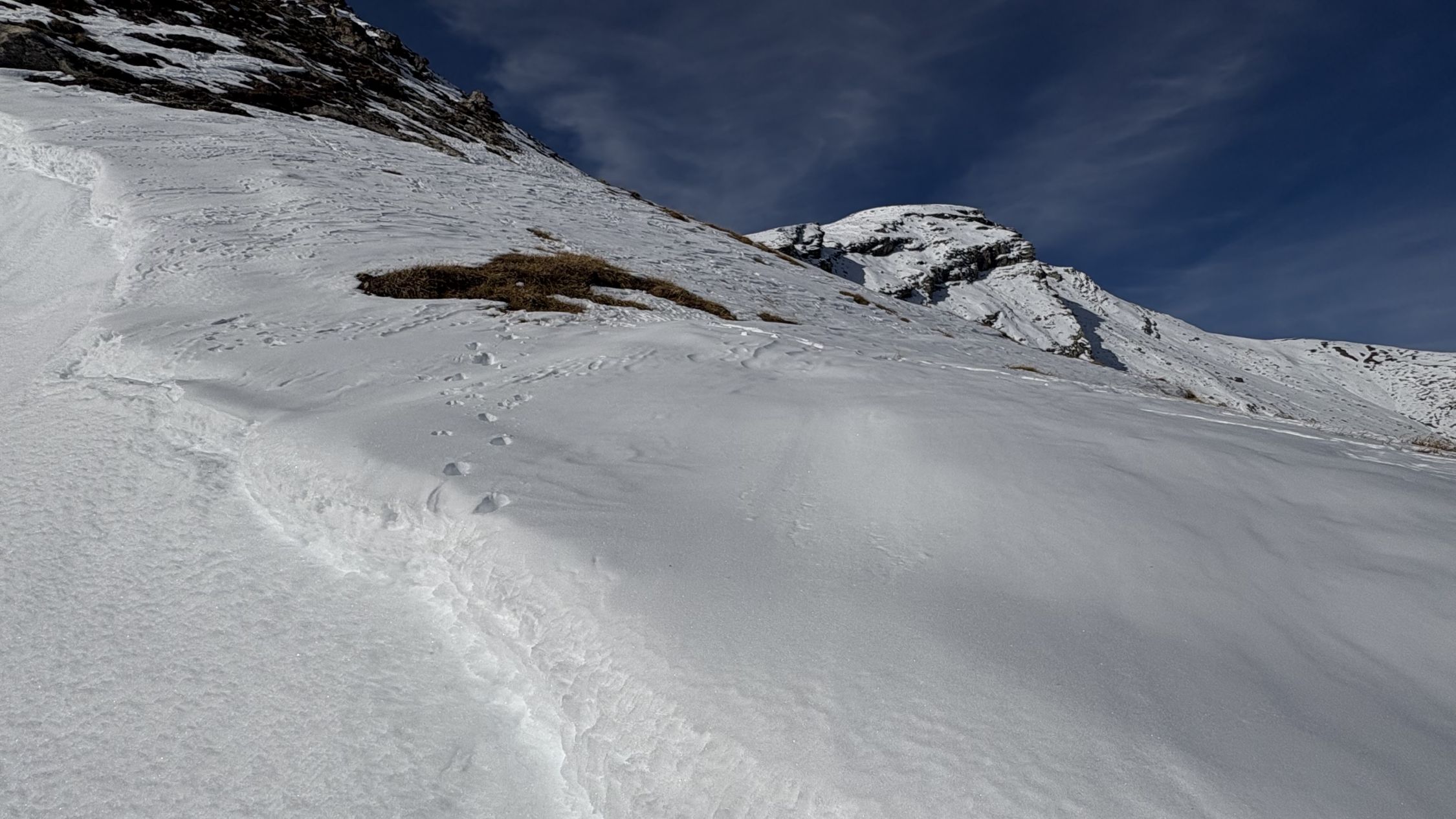 Bis Höhe Leiter 90% ohne Schneekontakt möglich, wenn man ab Pintg hart an der Westkante hochsteigt.