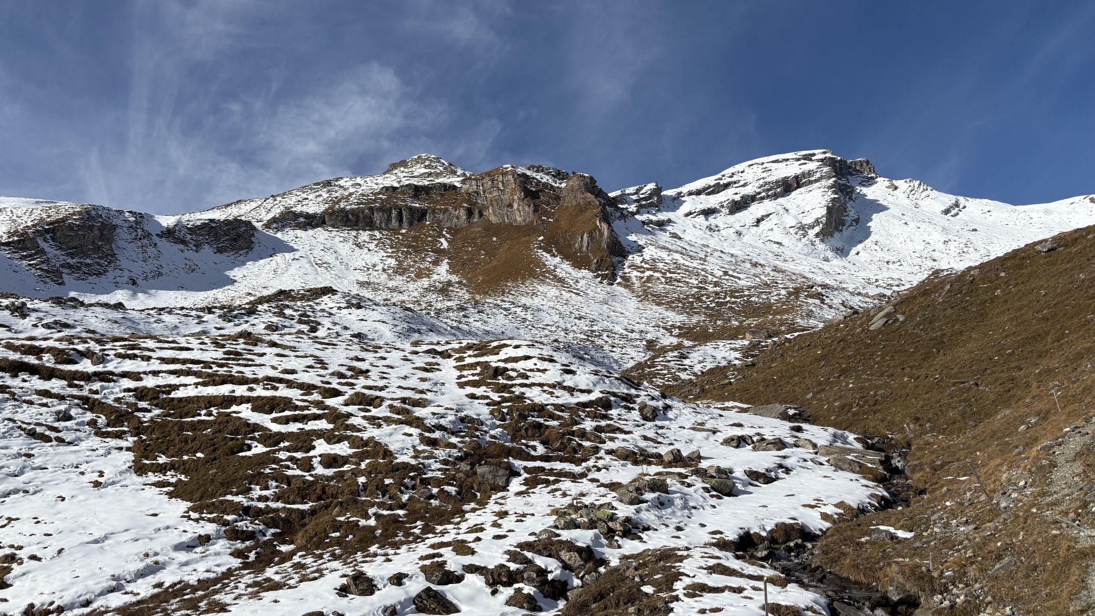 Ab Wergenstein wäre der Aufstieg ab Höhe 2000 mit Schneeschuhen möglich.