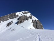 Da nicht alle Teilnehmer Steigeisen mit hatten und Stefan diese für den Weg zum Gipfel verlangte, verzichteten der eine und der andere auf den Aufstieg zum Gipfel und die Ehrgeizigen machen sich auf den Aufstieg. Die Spur war bereits gut ausgetreten und es gab nur eine gefährlich Stelle zwischen den Felsen.