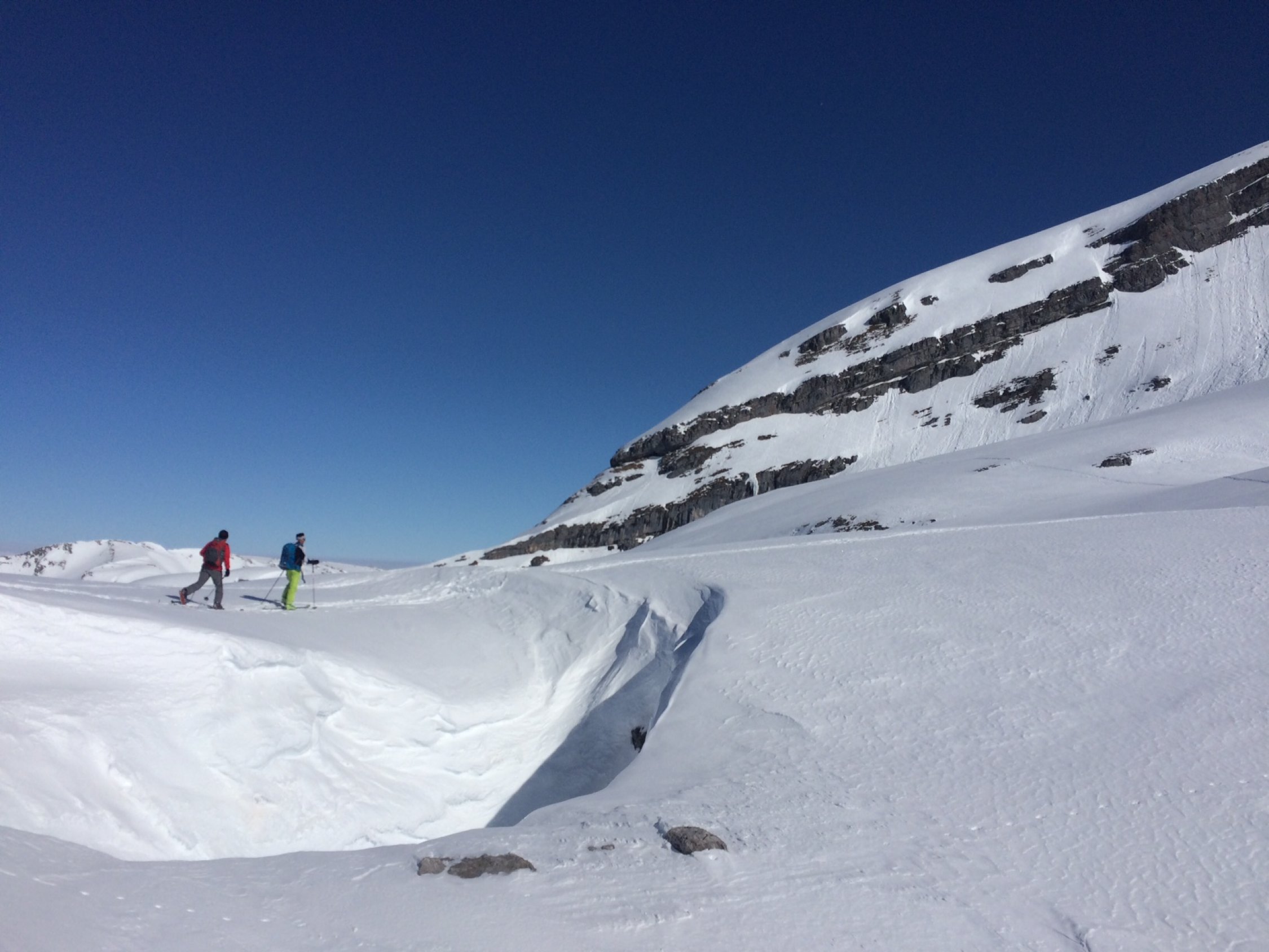 Da bereits eine weitere Tourengruppe im Anmarsch war, beschlossen die Lauerzer, den Platz im Skidepot frei zu geben und sofort mit der Abfahrt zu beginnen.