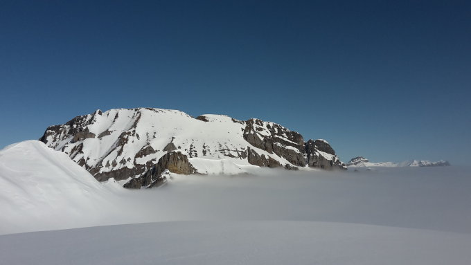 Die Verhältnisse sind immer noch sehr gut, leider war Nebel bis 2000 Meter, der heute ein Spielverderber war, wir mussten dann unser Tourenziel kurzfristig ändern.