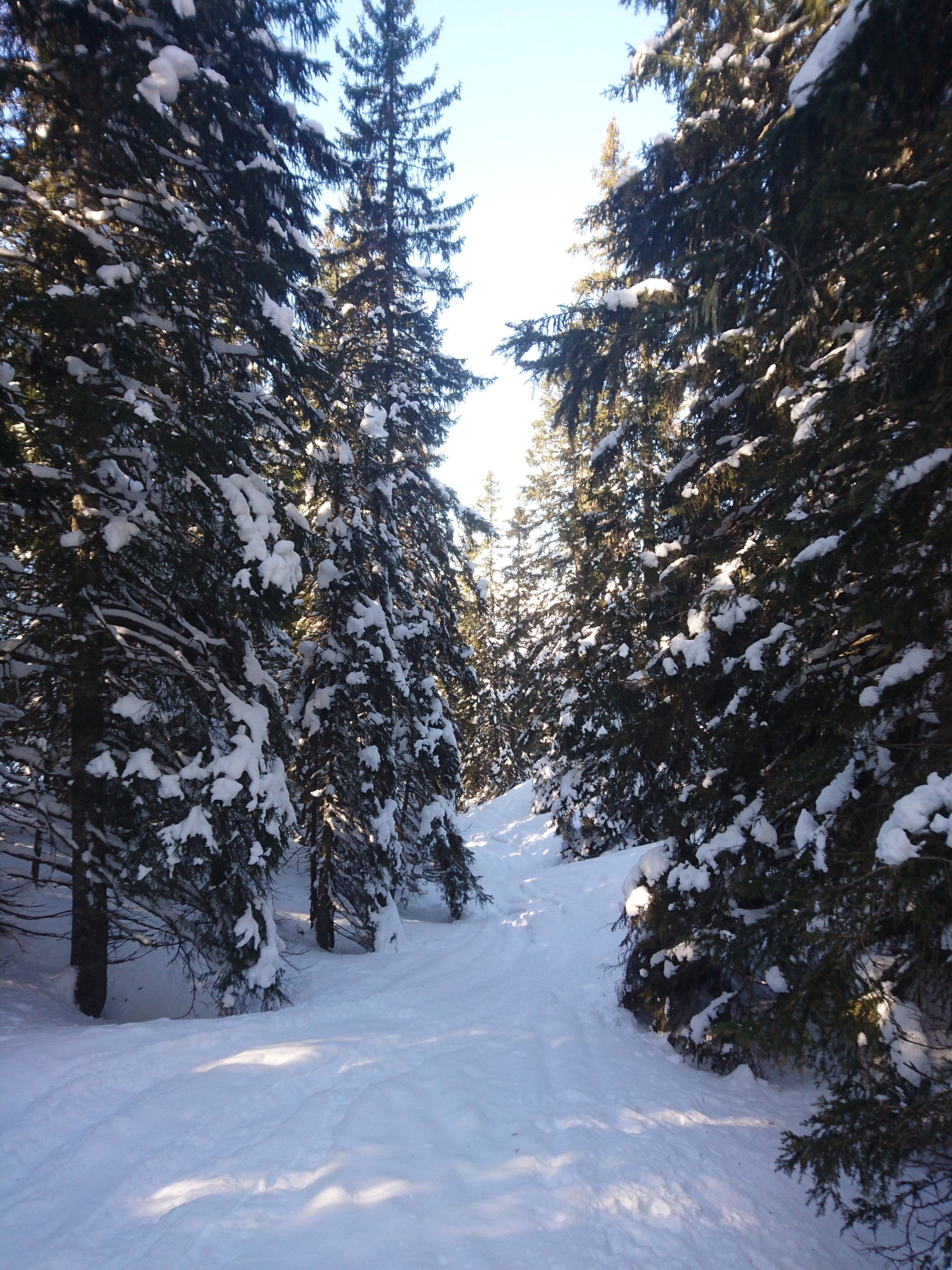 Eine schöne Tour heute. Schon früh löste sich der Nebel auf. Es hat genug Schnee am Gipfelhang und im Wald, der Bereich um die Aufstiegsspur ist wie immer abgeblasen. Um 9:45 stand ich auf dem Gipfel - genau richtig um noch unverspurte Pulverlinien am Gipfelhang mitzunehmen. Trotz des guten Wetters waren heute relativ wenige Tourengänger auf dieser Route anzutreffen.